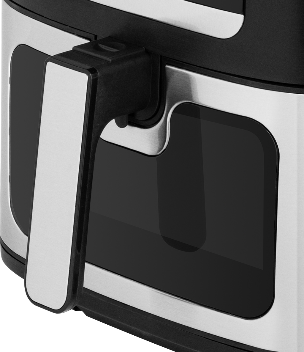 Ovom fritezom na vrući zrak se upravlja putem intuitivnog dodirnog panela s digitalnim displejom. Pored ručnog podešavanja temperature i vremena, ovdje ćete pronaći i brojne praktične podešene programe. Temperatura se može kontinuirano podešavati u opsegu 80-200 °C, a vrijeme od jedne minute do punog sata. Postoji i mogućnost odgođenog početka (od 1 do 24 sata), zahvaljujući čemu možete pripremiti hranu tačno prema dnevnom rasporedu domaćinstva. Svjetlosni indikatori i zvučni signal vas obavještavaju o radu friteze. Nakon završetka programa, uređaj se automatski isključuje. I sigurno ćete biti zadovoljni mogućnošću prekida pripreme i ponovnog pokretanja kasnije. Osim toga, napredak kuvanja se može pratiti kroz providni stakleni prozor – tako da imate pregled bez potrebe da ga otvarate.