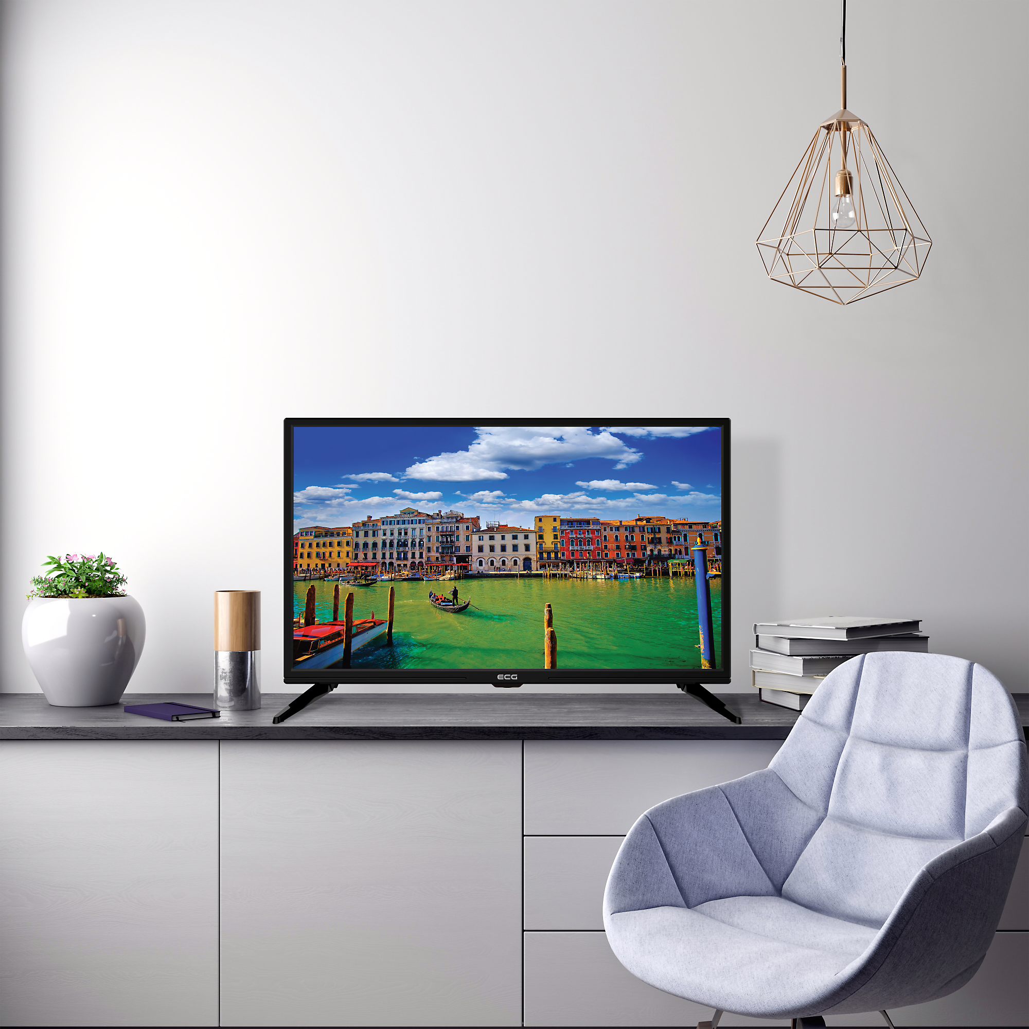 Abyste mohli doma novou televizi umístit přesně tam, kam potřebujete, disponuje ECG 24 H05T2S2 stabilním stojánkem a kromě toho se dá také zavěsit na zeď (prostřednictvím standardu VESA 100 × 100).