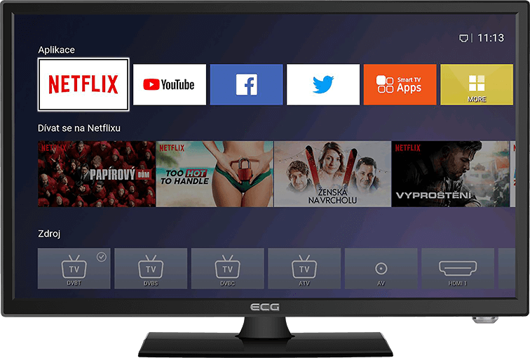 Představujeme vám první generaci chytrých televizorů ECG, které vám mají opravdu co nabídnout. Perfektním důkazem toho je televize ECG 24 HS01T2S2, která i přes úhlopříčku pouhých 24 palců (61 cm) nabízí kompletní nabídku aplikací běžně dostupných na mnohem větších a dražších modelech.