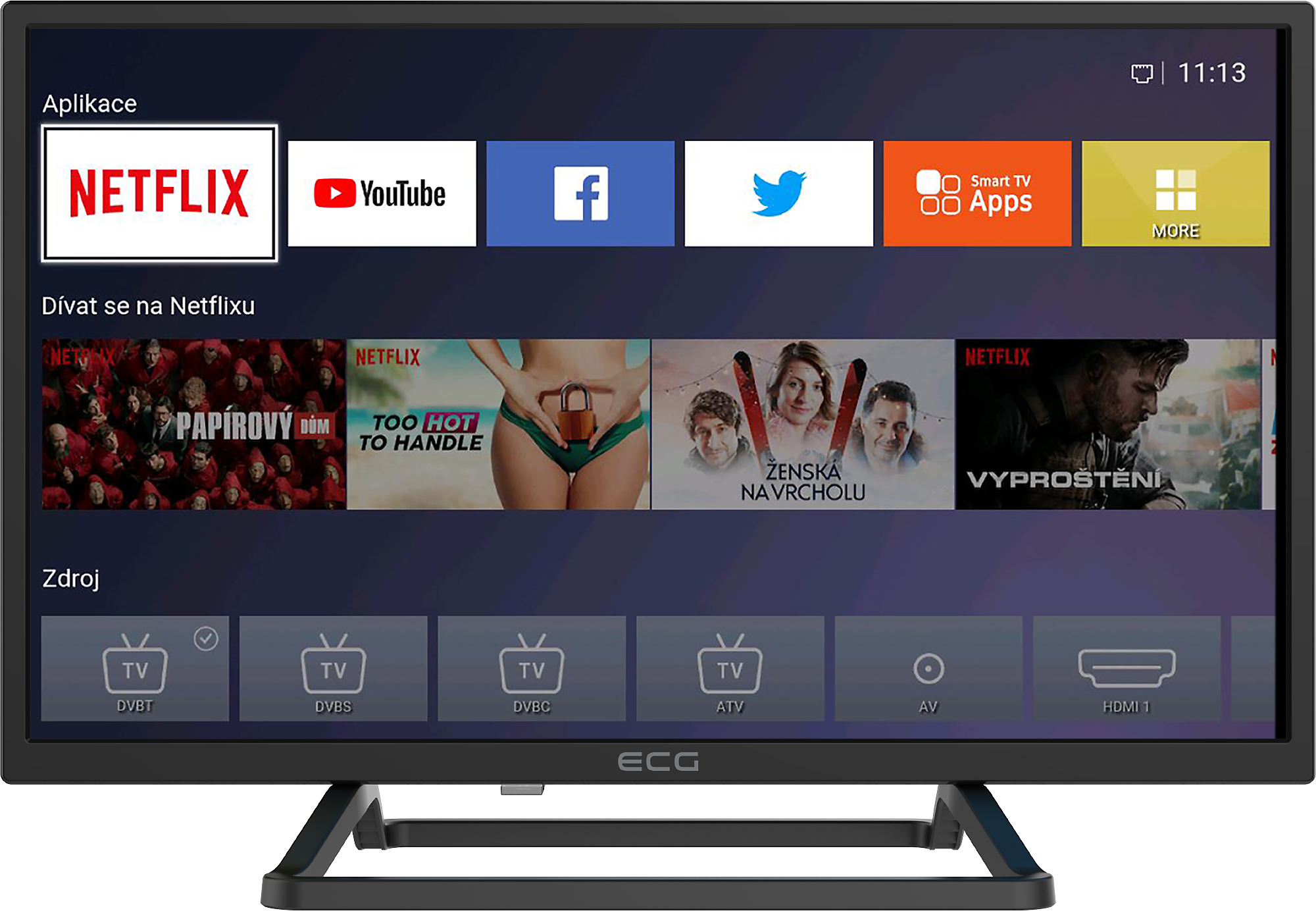 Jakmile připojíte chytrou televizi ECG k internetu, začnou se dít věci. Předinstalovaný operační systém Linux vám totiž zprostředkuje přístup k populárním streamovacím službám, jako je Netflix, YouTube, YouTube Kids či Amazon Prime Video. Také vám dá k dispozici klasický webový prohlížeč. A aby toho nebylo málo, navrch přihodí ještě aplikace sociálních sítí Facebook a Twitter. Jako na dlani tak máte přímo v televizi obsah přesně podle svého gusta.