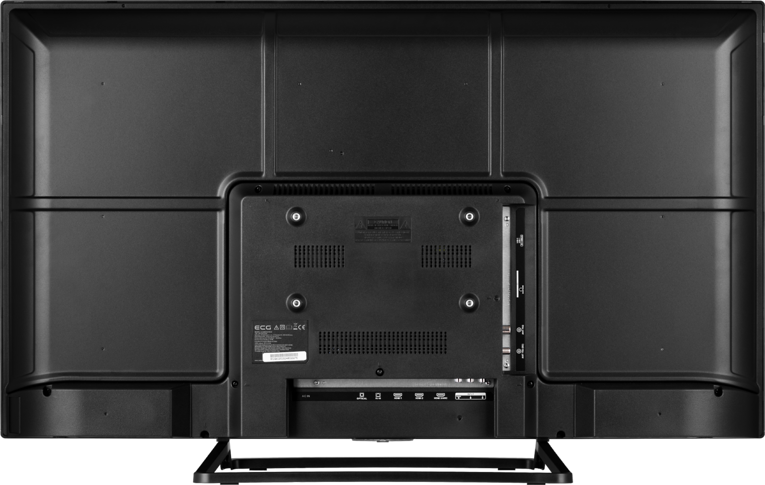 Televize je vyvedena v nadčasovém černém designu a její součástí je i elegantní stojánek, který se však dá v případě potřeby jednoduše odmontovat. Pokud tak učiníte, můžete přístroj zavěsit na stěnu – ECG 40 FS01T2S2 je kompatibilní s TV držáky využívajícími standardní systém VESA (200 × 100) .