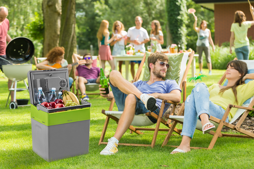 Díky kapacitě 28 l do chladničky uložíte chlazené nápoje nebo svačinu pro celou rodinu. Chladnička dokáže chladit o maximálně 20 °C pod okolní teplotu a ohřát se až o 65 °C nad okolní teplotu. Toto měření je prováděno při okolní teplotě kolem 25 °C. Zároveň je výrobek zařazen do kategorie klimatické třídy 16-32 °C (N). To znamená, že v ideálních podmínkách může chladnička dosáhnout teploty blízké 0 °C nebo mírně nižší, a naopak se při ohřevu může blížit teplotě 80 °C. Je třeba mít na paměti, že chladící účinek může být omezen podle aktuální venkovní teploty, například pokud je venku 10 °C, tak chladnička nedosáhne chladicího efektu snižujícího teplotu o 20 °C. Funkce COLD a HOT snadno nastavíte pomocí přepínacího ovládání v zadní části chladničky. Pro maximální úsporný provoz lze využít program ECO.