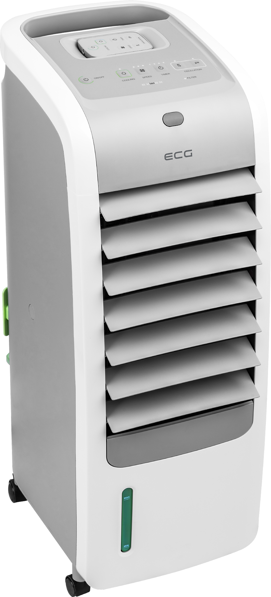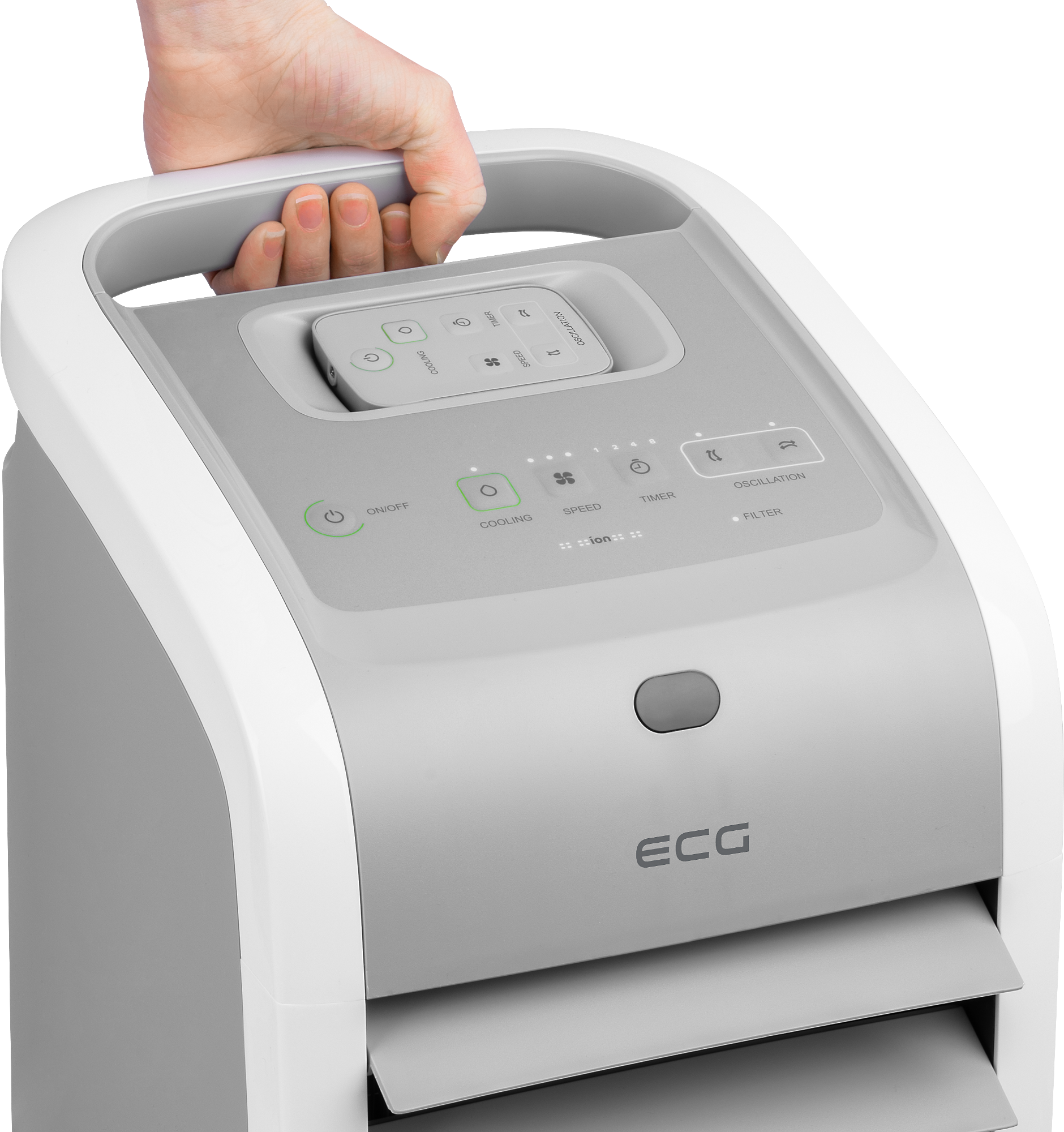 Nejpoužívanějším zařízením v letních dnech je v českých domácnostech bezesporu ventilátor. V případě ECG ACR 5570 se jedná pouze o jednu ze čtyř funkcí. Neznamená to však, že by ventilátor byl méně účinný, ba naopak. Zvládá vertikální i horizontální oscilaci. Dle potřeby lze nastavit 3 rychlosti proudění vzduchu, a to nízkou, střední nebo vysokou.