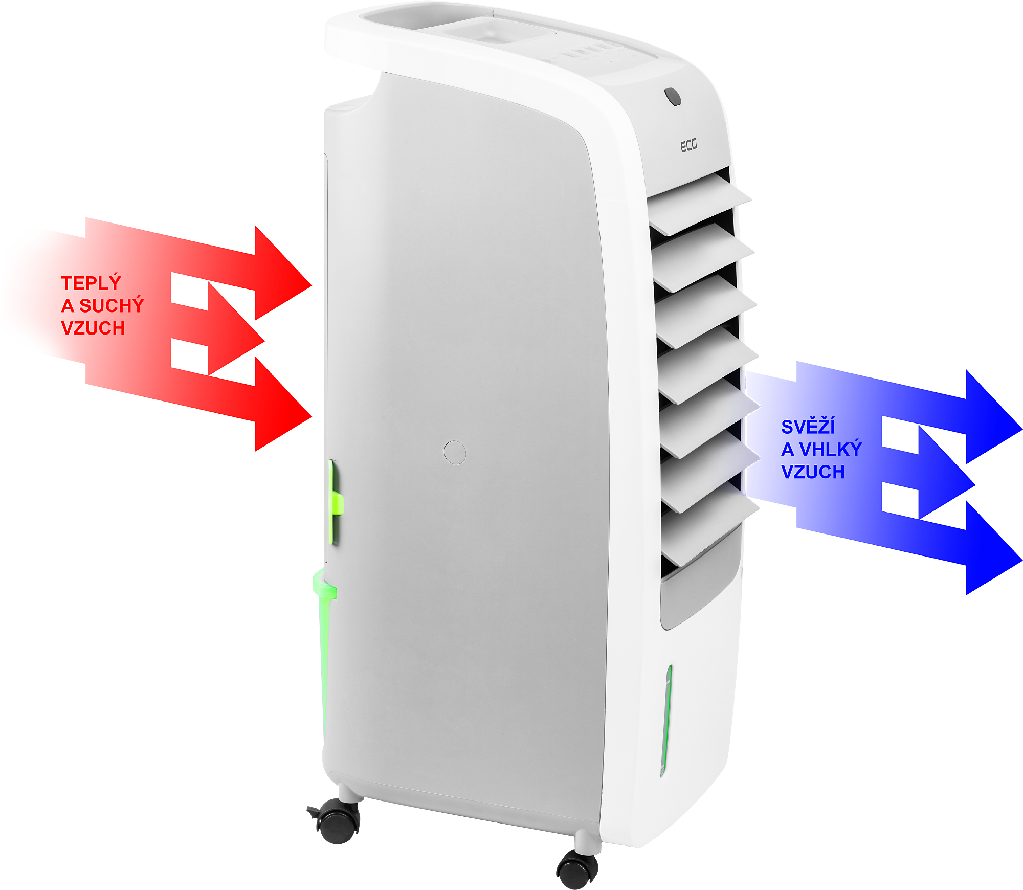 Je vám v létě teplo a nemůžete usnout? V takovém případě je ideální ochlazování. Na rozdíl od běžného ventilátoru, který jen víří vzduch, ochlazovač vzduch doslova ochlazuje příslušným chladicím médiem. V případě ECG ACR 5570 lze použít vodu, vodu s ledem nebo chladicí vložky.
