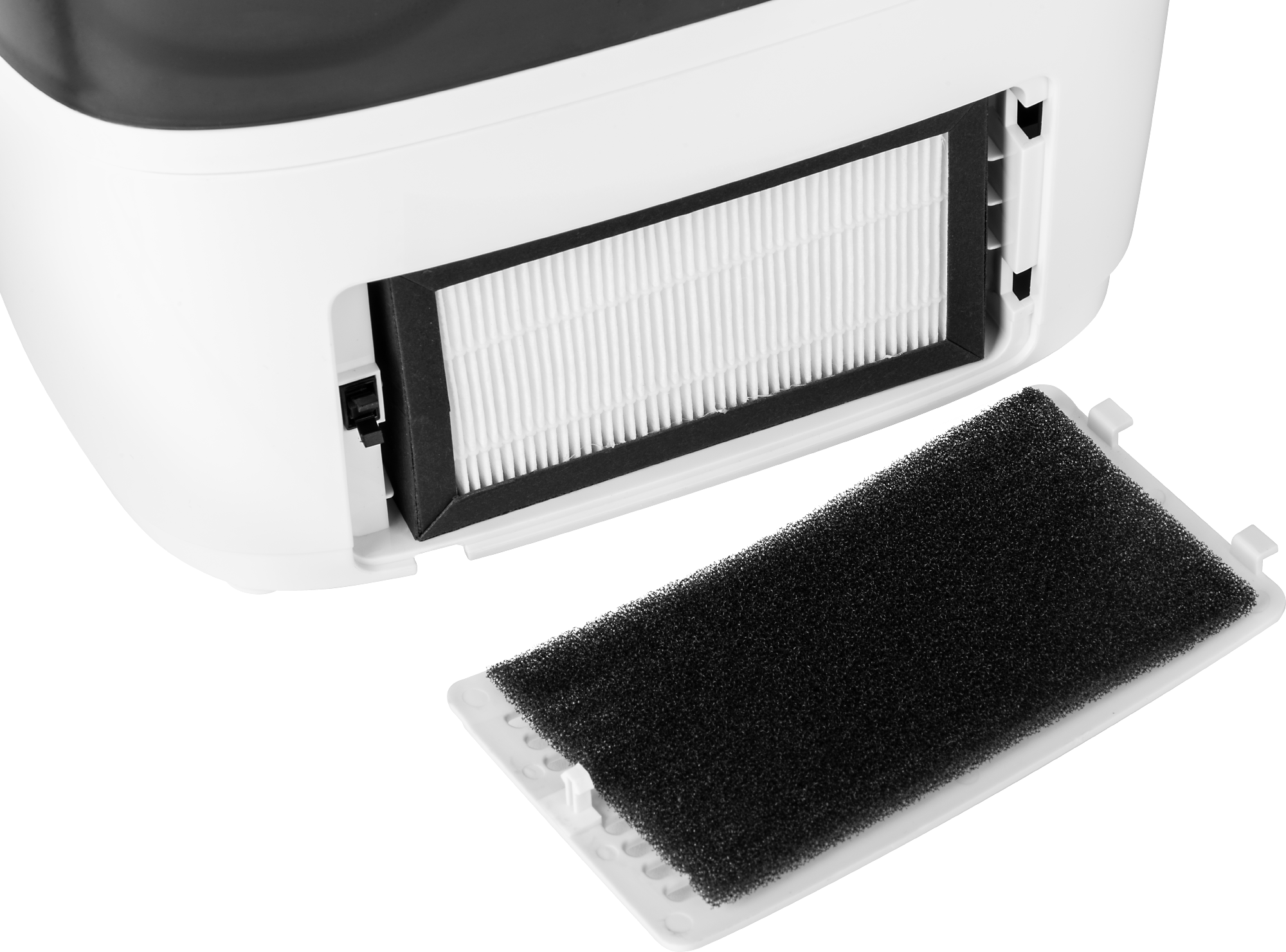 Zvlhčovač je vybavený také špičkovou trojitou filtrací. Je v něm ukrytí výměnný HEPA filtr 11, aktivní karbonový filtr, Pre-filter a jako bonus ještě vodní filtr. Právě díky HEPA filtru slouží zvlhčovač také jako mini čistička vzduchu, protože se jedná především o filtrování velkého množství prachu ze vzduchu. Celý filtrační prostor je stejně velký jako u zvlhčování.