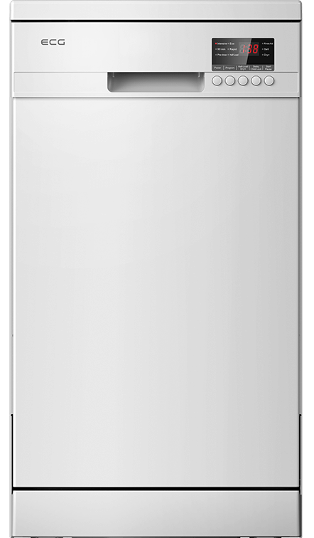 Volně stojící myčka nádobí ECG EDF 4525 QWE se díky své šířce 45 cm vejde i do malé domácnosti. Je určena pro 9 jídelních souprav, které bezchybně umyje s pouze 10 litry vody na jeden cyklus. Mezi praktické funkce myčky patří možnost odložení startu nebo dětský zámek. S tímto modelem se nemusíte obávat vytopení vaší domácnosti. Stará se o to funkce Aquastop, která brání tomu, aby v případě jakékoliv poruchy unikala voda z myčky ven.
