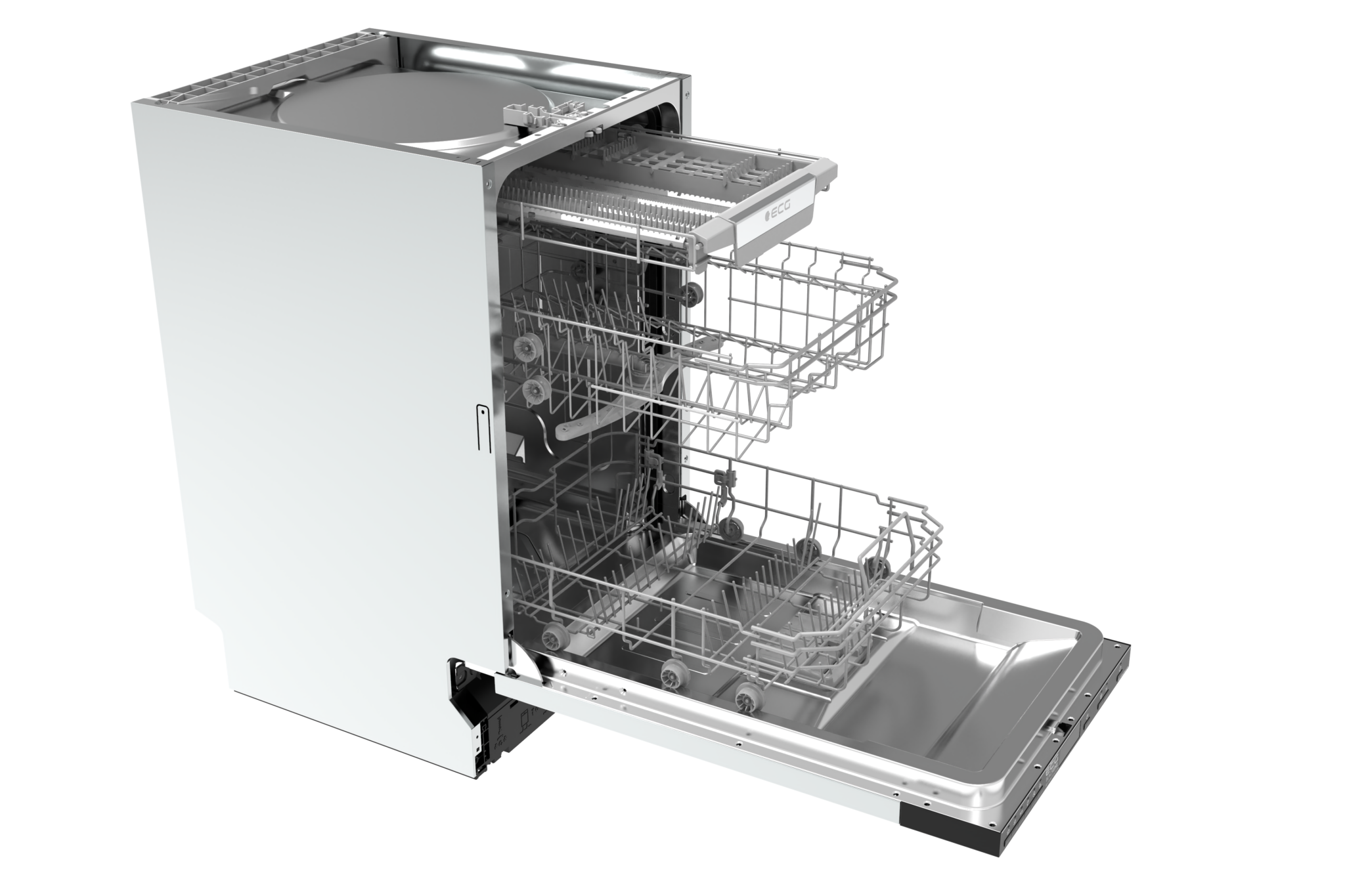 Vestavné provedení, jehož zásluhou spotřebič krásně splyne s designem vaší kuchyňské linky. Funkce Extra sušení, která k perfektní čistotě nádobí přidá i jeho precizní vysušení. A taky hlučnost přijatelných 47 dB díky níž vás doma mytí nádobí nijak zásadně neruší. To je jen drobná část výhod, jejichž prostřednictvím se myčka ECG EDI 100443 BlackLine stane vaším nepostradatelným pomocníkem. Vejde se do ní 10 jídelních sad, nabízí vám 6 různých programů a její bezpečný provoz zajišťuje systém Aquastop. Spotřebič vás potěší i kvalitním nerezovým vnitřním povrchem a nízkou spotřebou vody – na jeden cyklus jí potřebuje jen 9 litrů.