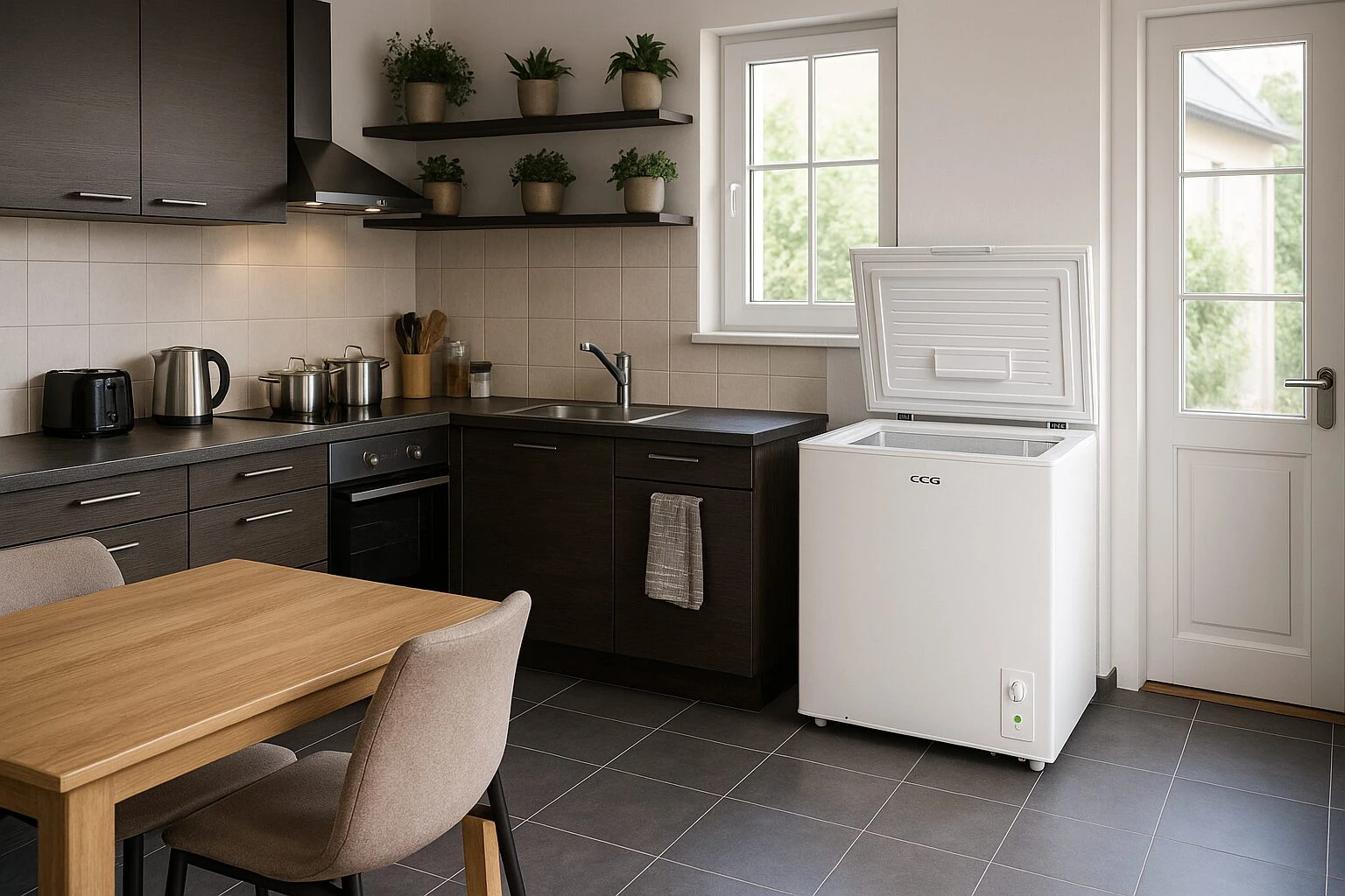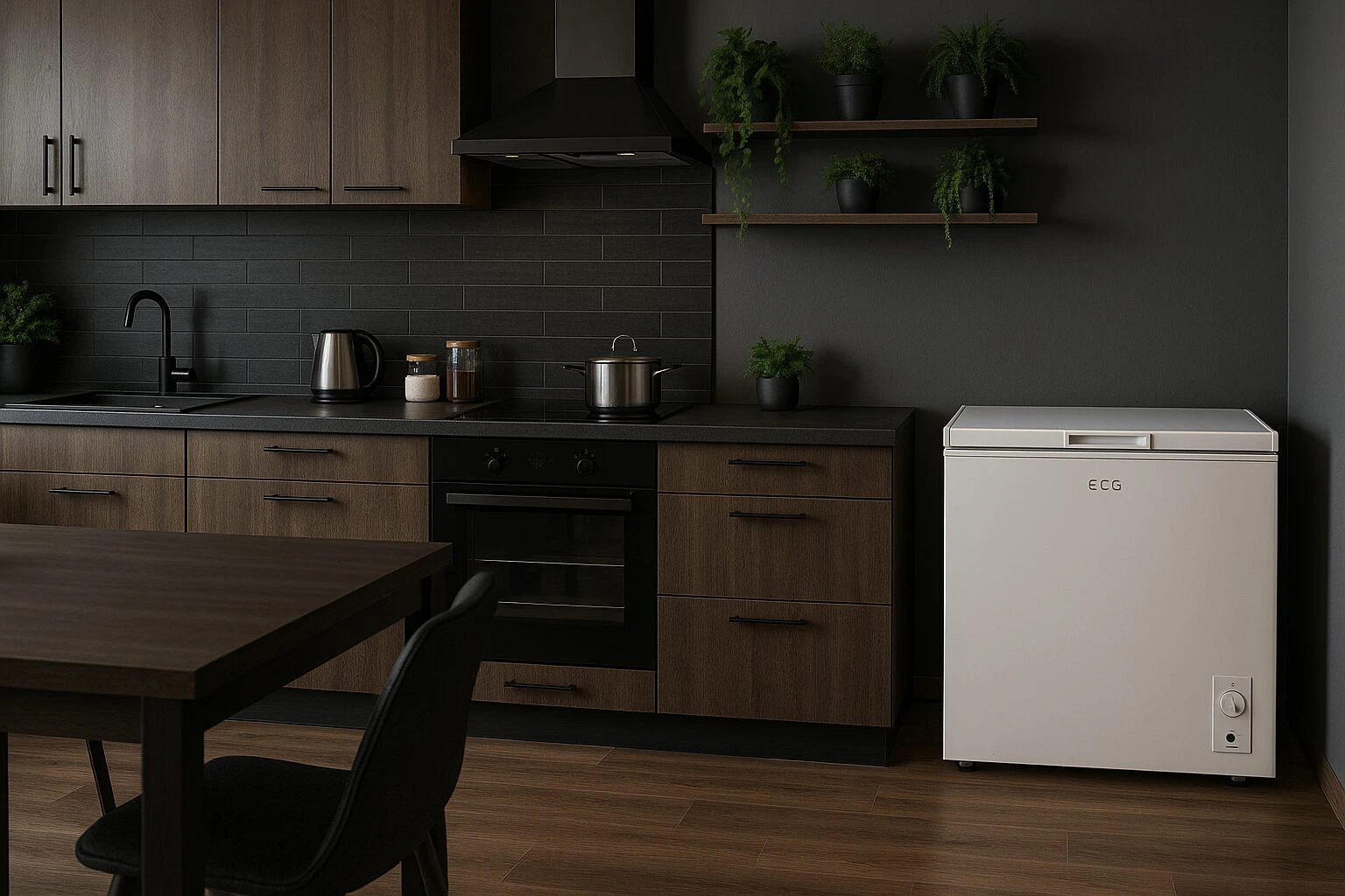Pultový mrazák ECG EFP 11982 WE spadá do klimatické třídy SN/N/ST, a tak může najít uplatnění nejen v kuchyni, ale i v méně vytápěných místnostech. Teplota jeho okolí se totiž může pohybovat mezi 10 a 43 °C. Za provozu spotřebič dosahuje maximální hlasitosti 37 dB, takže vás nijak zásadně neruší. Snadnou manipulaci s mrazákem umožňují integrovaná pojezdová kolečka.