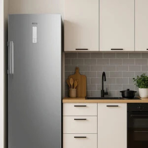 Protože naše lednice s mrazákem 2 v 1 spadá do klimatické třídy ST/N/SN/T, může najít své místo nejen v kuchyni, ale také v jiných, klidně i méně vytápěných místnostech. Teplota jejího okolí se totiž může pohybovat mezi 10 a 43 °C. Flexibilitu umístění přitom ještě podtrhává fakt, že tento spotřebič disponuje nastavitelnou výškou a možností snadné záměny směru otevírání dveří.