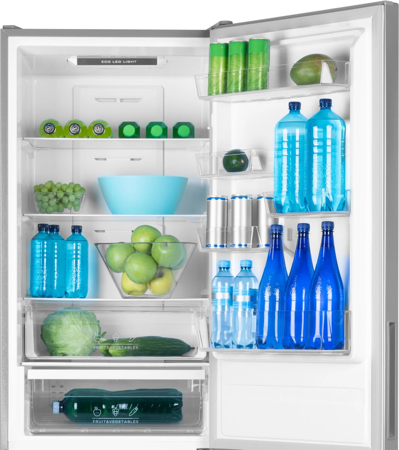 Chladicí část disponuje kapacitou 224 litrů a je přehledně rozdělena 4 policemi z kvalitního bezpečnostního skla a nezbytnou zásuvkou na ovoce a zeleninu. Do přihrádek ve dveřích můžete postavit například větší láhve či krabicové mléko, ale také menší konzervy nebo sem uložit vajíčka.