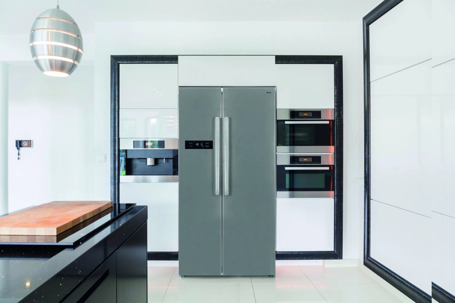 Tato americká lednice disponuje konstrukcí typu side-by-side, u které jsou chladicí a mrazicí část umístěny vedle sebe, přičemž dveře se otevírají do stran jako skříň. Rozměry tohoto spotřebiče jsou 176,5 cm (výška) × 89,7 cm (šířka) × 76,1 cm (hloubka) a jeho hmotnost je 81 kg. Pro zajištění stability ledničky na jakémkoliv povrchu je možné flexibilně nastavit výšku nožiček. A nulový přesah pantů zaručuje, že boční hrany dveří při otevírání nepřesahují mimo tělo ledničky, díky čemuž můžete spotřebič umístit i do těsnějších prostor.