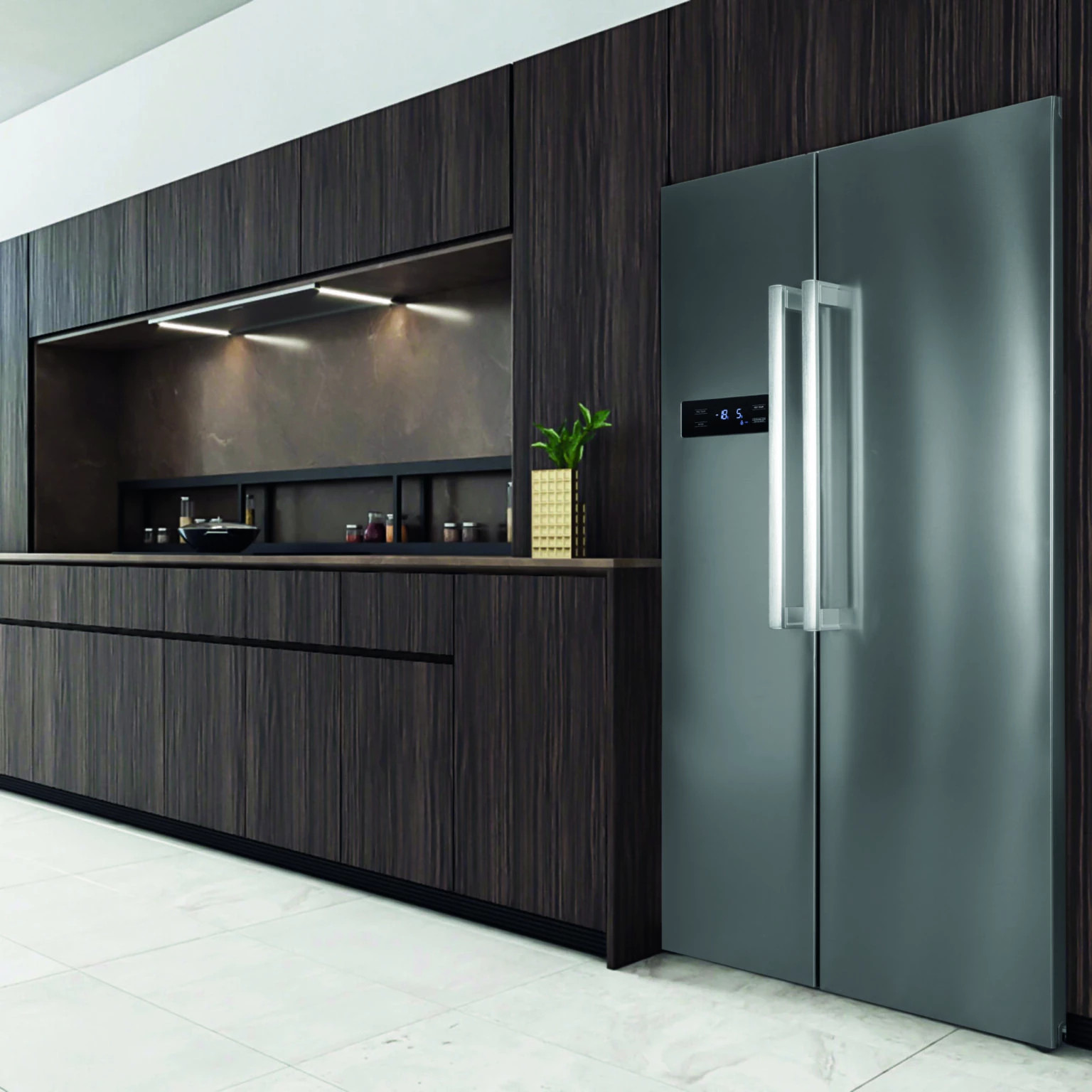 Americká lednička ECG ERS 21782 NIXE v elegantním nerezovém provedení se může stát perfektním doplňkem každé moderní kuchyně. Nejenže totiž skvěle vypadá, ale hlavně vám dokáže výrazně usnadnit každodenní život. Její prostorný interiér o celkovém objemu 548 litrů vám umožní skladovat velké množství potravin, aniž byste museli dělat kompromisy. Vnitřní LED osvětlení ve spolupráci s chytrým uspořádáním úložného prostoru vám pak zajišťuje dokonalý přehled. A údržba? Žádný problém. Díky systému No Frost můžete zapomenout na zdlouhavé odmrazování a věnovat se raději tomu, co máte rádi.