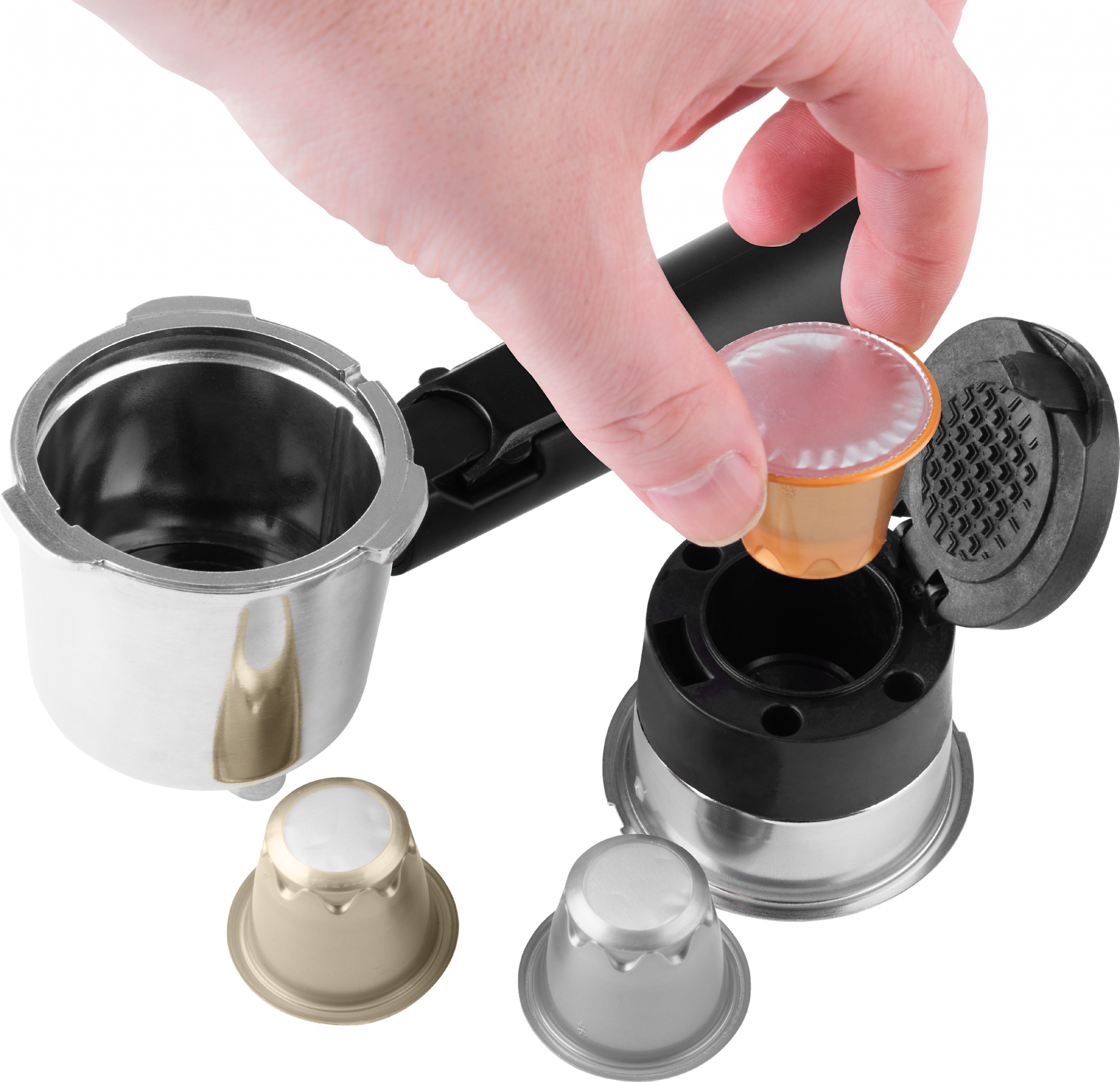 Součástí balení je také filtr na E.S.E. kapsle – Easy Serving Espresso. Jistě však oceníte i kompatibilitu s kapslemi Nespresso. Nerezový filtr právě na tento druh kapslí ve výbavě totiž naleznete také, což využití přístroje ještě rozšiřuje a vám umožňuje udělat si ještě větší a pestřejší množství kávy a jejích variací.