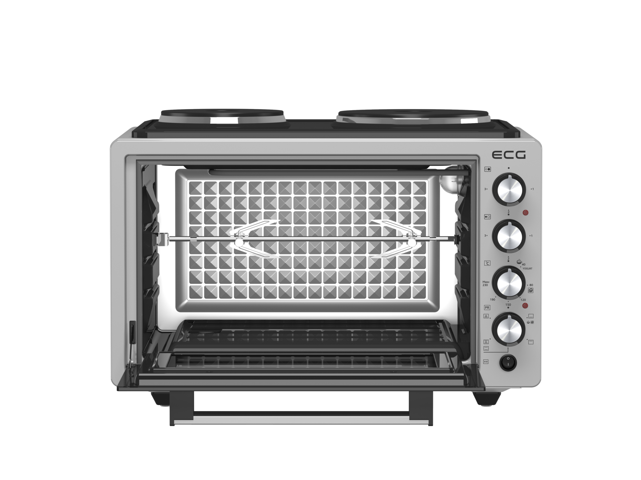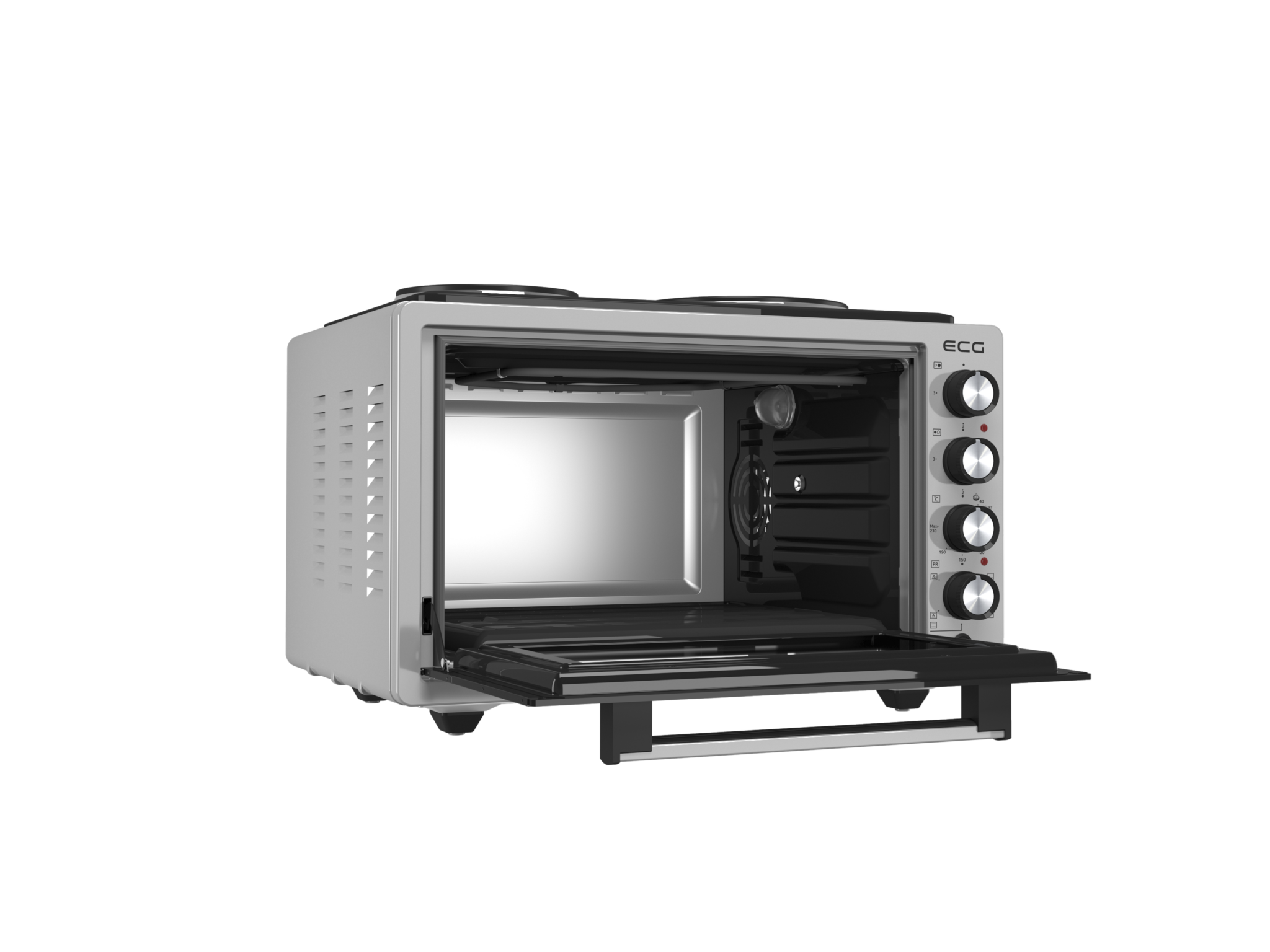 Stolní trouba s varnými plotýnkami ECG ETH 3701G vás potěší i vysoce kvalitním elegantním šedém provedením. Vnitřní prostor je navíc smaltovaný, což usnadňuje údržbu a přispívá k dlouhé životnosti spotřebiče. Dvířka trouby jsou pak pro bezpečnější a pohodlnější manipulaci opatřena dvojitým sklem. O tom, že je provedení této stolní trouby, promyšlené do posledního detailu, svědčí i přítomnost skryté spodní topné spirály.