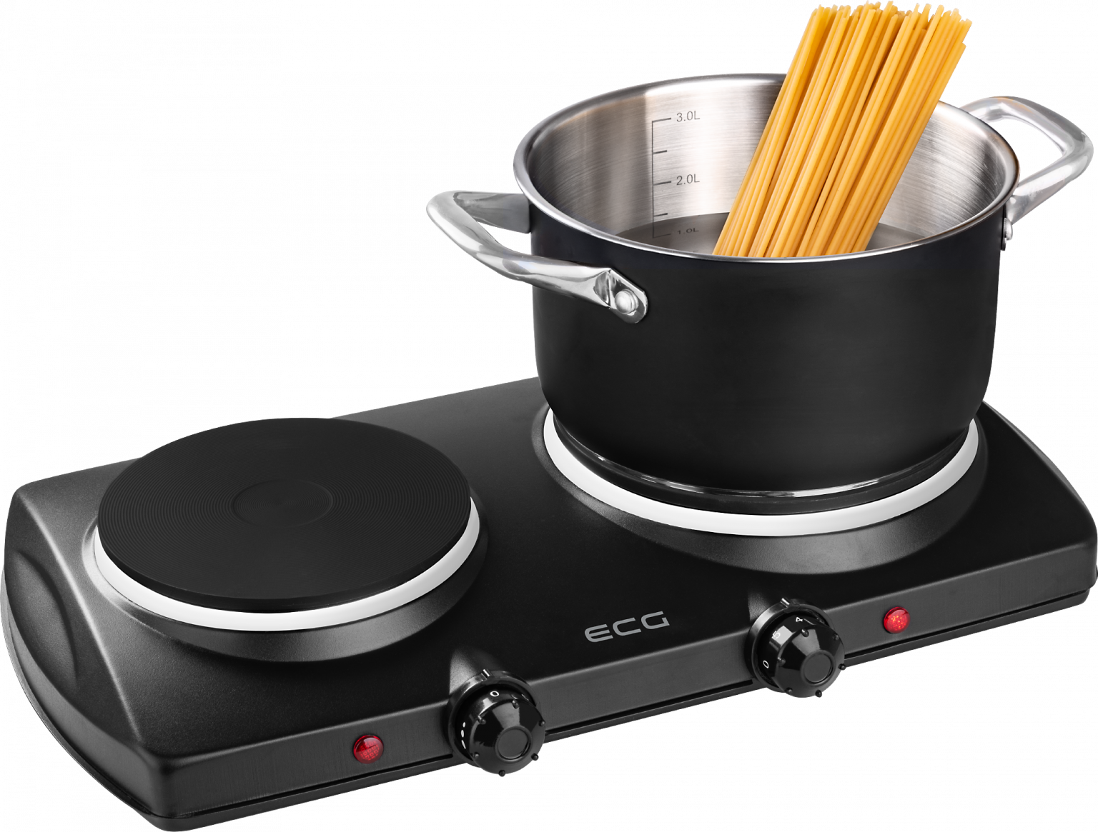 Pro páry či jednotlivce se skvěle hodí dvouplotýnkový elektrický vařič ECG EV 2512. Ten využijete nejen v malých kuchyních, ale i na chalupách nebo v kempech. Vařit můžete na dvou varných zónách, na které díky průměru 18,5 a 15,5 cm postavíte menší i větší hrnce či pánvičky. Připravíte tak najednou hlavní chod i s přílohou.