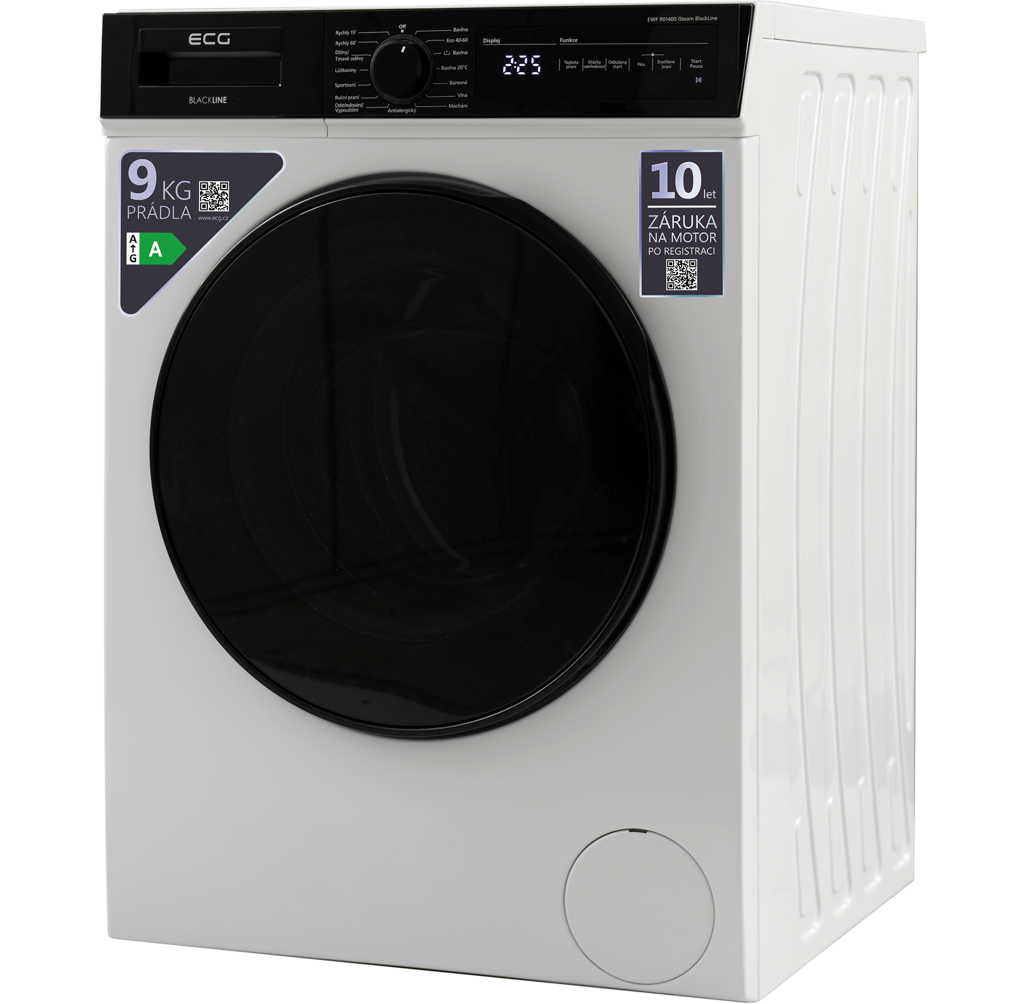 S obsluhou automatické pračky ECG EWF 901400 iSteam BlackLine si hravě poradí úplně každý. Je tomu tak zásluhou elegantního černého panelu, na němž máte k dispozici otočný ovladač pro volbu programu a k tomu ještě speciální část s digitálním displejem a dotykovým ovládáním všech nejdůležitějších funkcí. K bezproblémové obsluze pračky navíc přispívá i fakt, že popisky ovládacího panelu jsou v češtině.