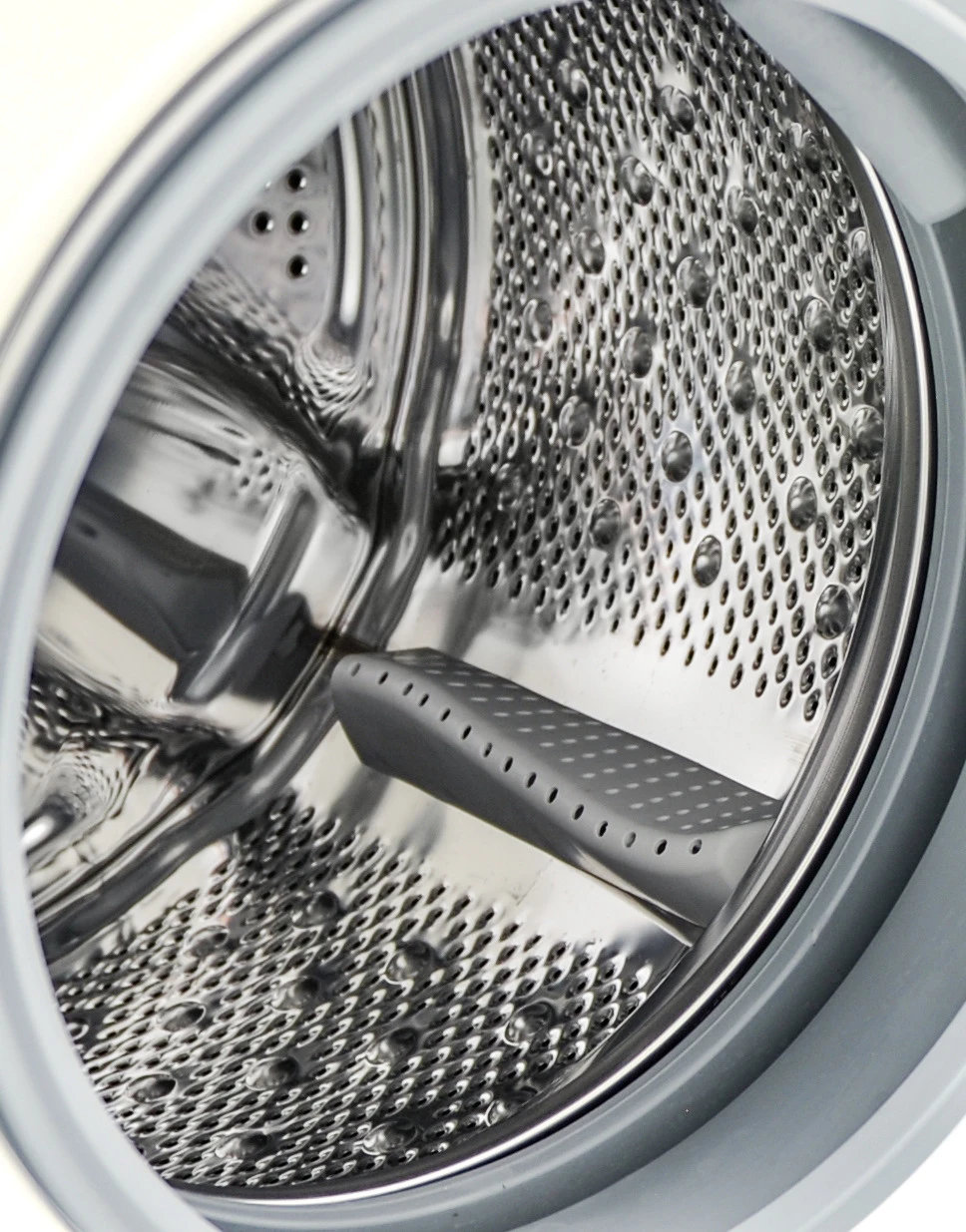 Perfektní stabilitu pračce zajišťují bočnice vylisované do tvaru bumerangu. Jejich přičiněním totiž spotřebič i při ostrém provozu účinně tlumí vibrace.