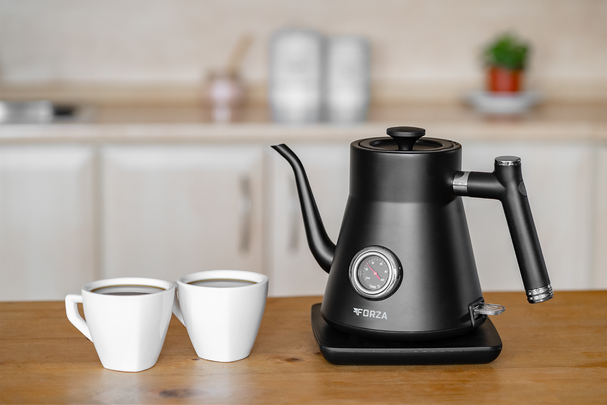 Pokud si svou kuchyň hýčkáte a chcete, aby v ní byl každičký prvek originálním designovým kouskem, rozhodně by vám neměla uniknout ani rychlovarná konvice ECG FORZA 5000 Pour Over Nero. Tento sympatický malý spotřebič jsme totiž navrhli tak, aby vám spolehlivě sloužil, ale zároveň byl i ozdobou domácnosti. Přisoudili jsme mu proto prémiový design s husím krkem, matnou černou povrchovou úpravou a stylovým analogovým teploměrem – vzhled, který upoutá vaši pozornost, hned jak vejdete do místnosti. Objem této designové konvice je 0,8 litru, připojovací kabel měří dostatečných 70 cm a příkon spotřebiče činí 1000–1200 W.