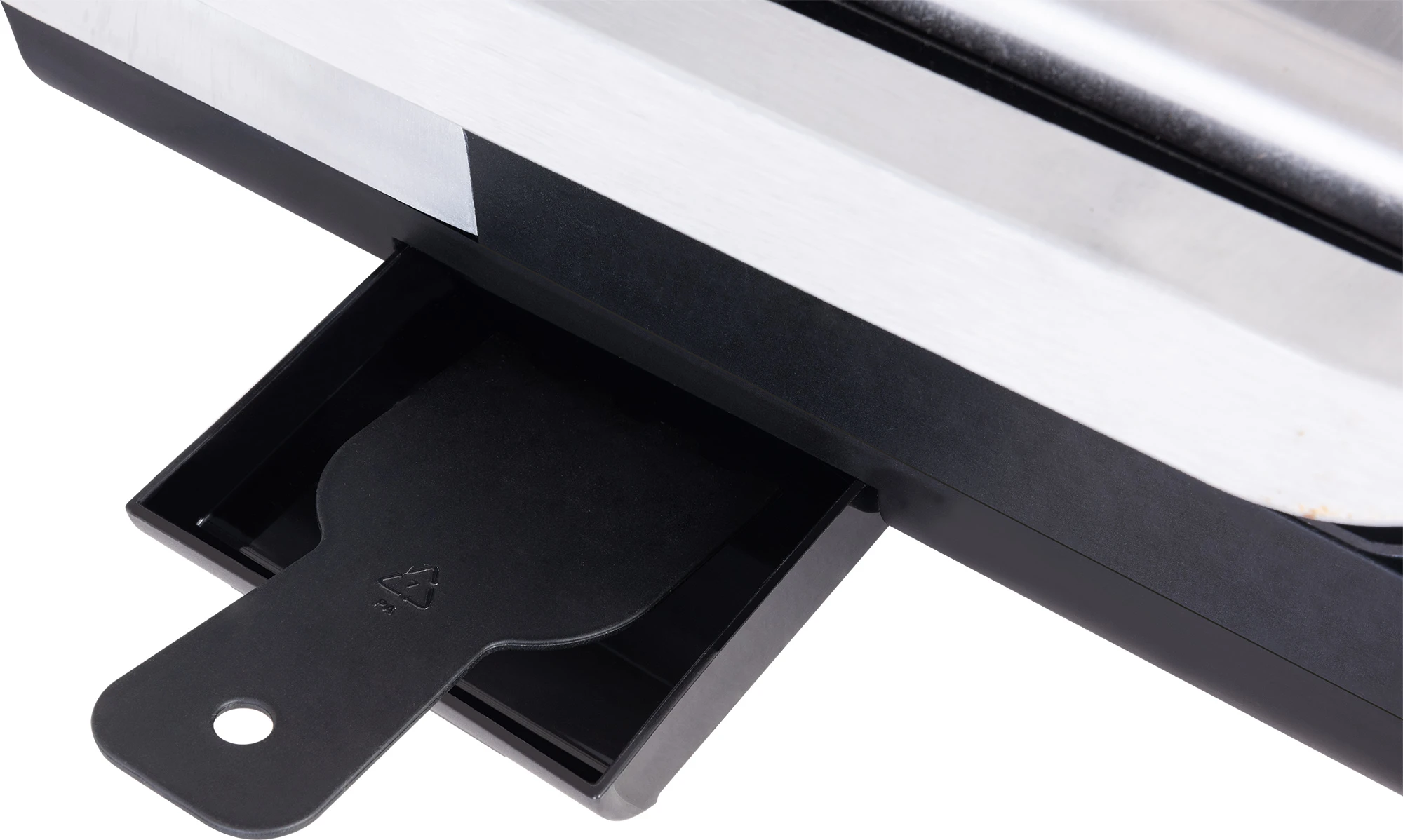 Komu by se chtělo gril složitě a zdlouhavě čistit? U tohoto modelu není údržba problém. Stará se o to nepřilnavý povrch vyměnitelných pečicích ploten i třeba vyjímatelná odkapávací miska, která zachycuje přebytečný tuk, čímž udržuje gril čistý během grilování i po něm. Součástí balení je navíc i škrabka, kterou nečistoty hravě odstraníte. Velikost grilovacích ploten činí u tohoto grilu 240 × 330 mm.
