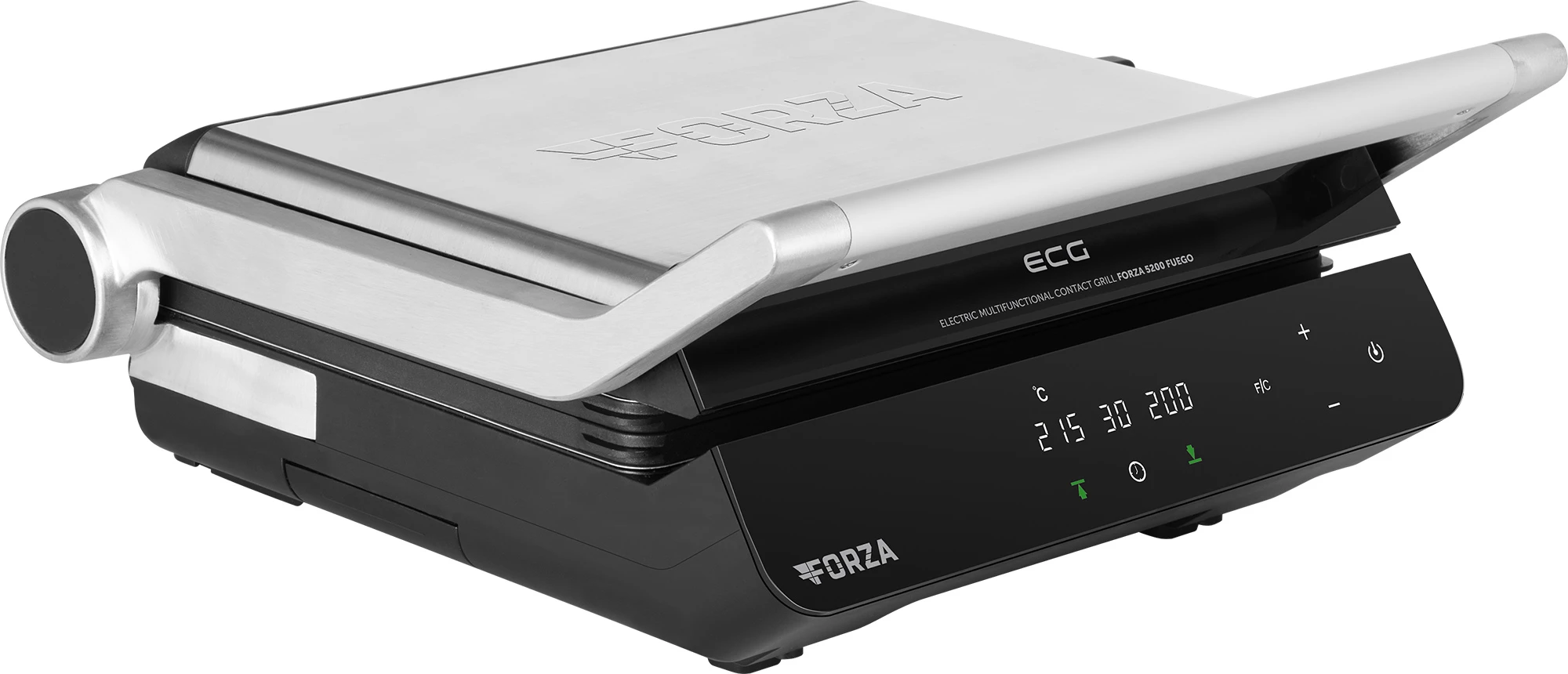 Přiložený grilovací teploměr vybavený teplotním alarmem zajistí pokaždé dokonale propečené steaky tím, že vás upozorní, když střed masa dosáhne požadované nastavené teploty. Tento kontaktní gril vyniká i elegantním nerezovým provedením a je vybaven tepelně izolovanými madly či protiskluzovými podložkami – tyto prvky zajišťují jeho bezpečné používání bez rizika popálení nebo nechtěného posunu přístroje po pracovní desce. Praktické jsou pak i výklopné nožičky, které umožňují nastavit optimální sklon grilu – když např. chystáte volská oka nebo lívance, snadno vytvoříte perfektní rovinu, zatímco pro přípravu tučného masa můžete na grilu nastavit lehký sklon, který umožní odtok výpeku do odkapávací misky. ECG FORZA 5200 Fuego je zkrátka dokonalým řešením pro každého, kdo miluje jednoduché a rychlé grilování s maximální kontrolou nad přípravou jídla. Pořiďte si ho do své kuchyně a staňte se grilovacími mistry!