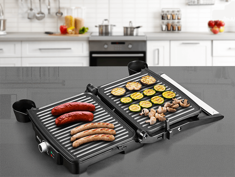 Kontaktní gril ECG je velmi variabilní a můžete na něm nastavit 3 provozní polohy – grilování, BBQ a zapékání. Poloha grilování je vhodná například k tepelné úpravě zeleniny, BBQ využijete hlavně při úpravě masa a zapékání vám usnadní přípravu oblíbených panini.
