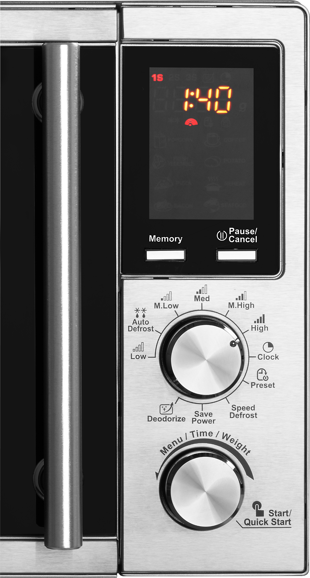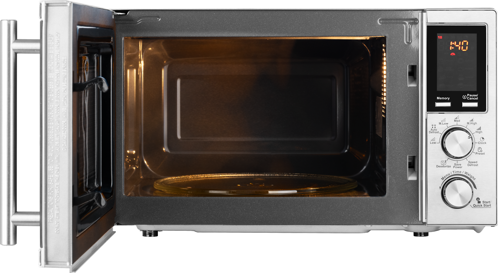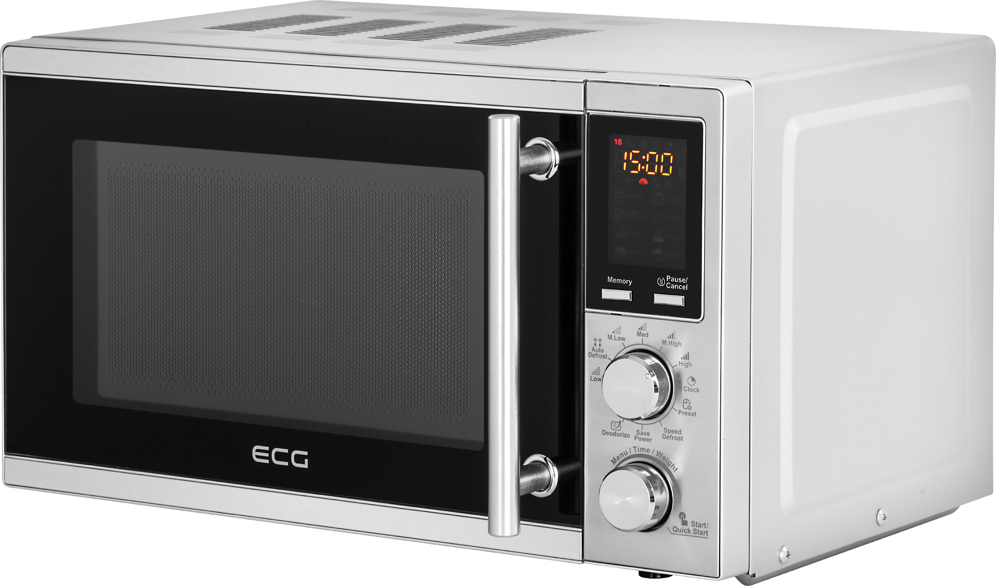 Pohodlný a rychlý ohřev večeře či oběda je samozřejmostí s mikrovlnnou troubou ECG MTD 2072 GSE. Bez hromady špinavého nádobí máte na stole během chvilky svůj oblíbený pokrm. Na první pohled vás mikrovlnná trouba ECG zaujme svým nadčasovým nerezovým provedením. Moderní design doplňují otočné knoflíky. Velký prostor z ovládacího panelu je věnován přehlednému displeji, který kromě aktuálního nastavení zobrazuje také denní čas.