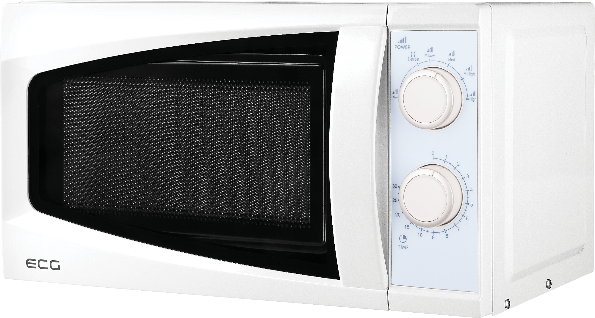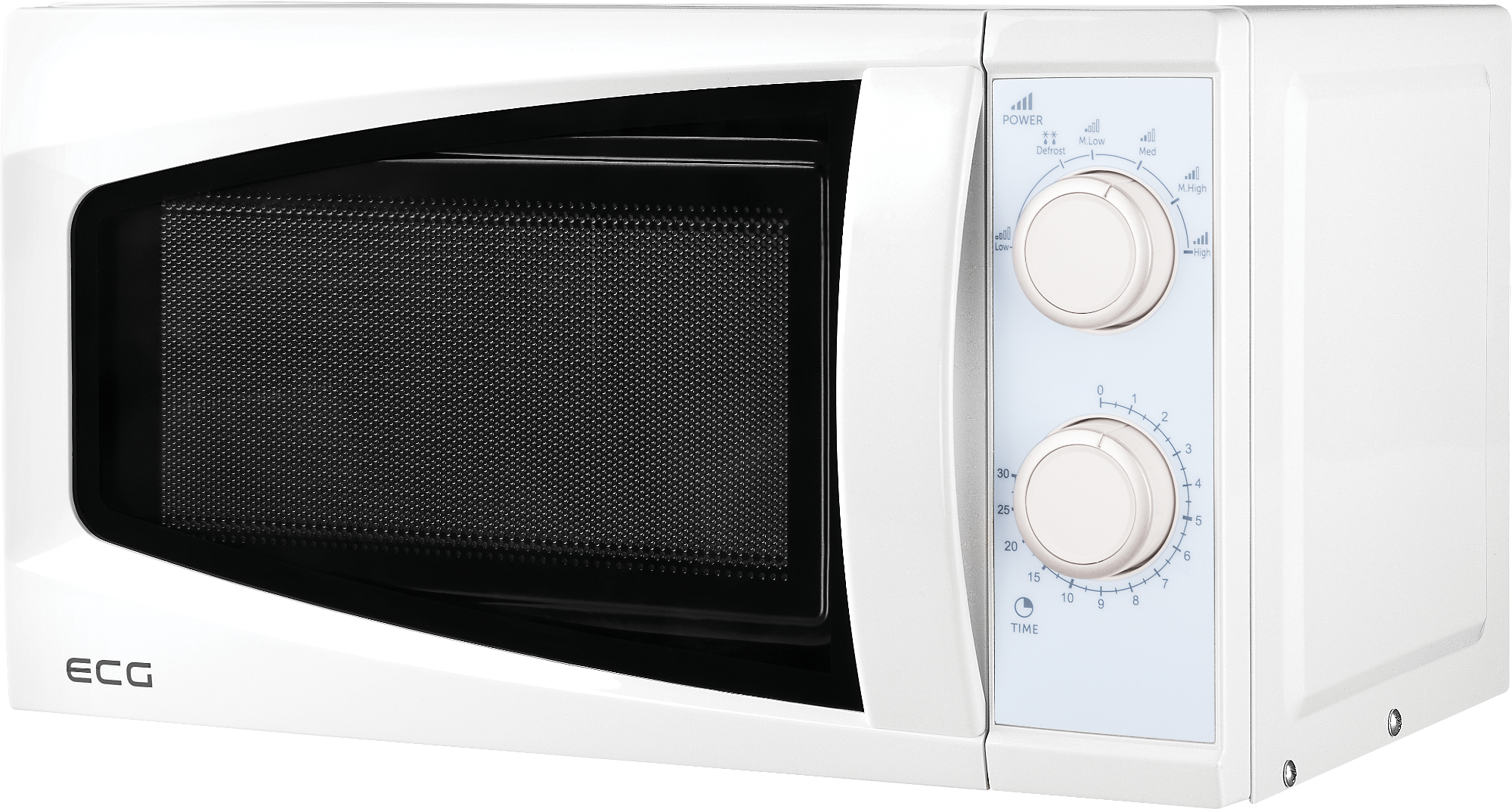 Mikrovlnná trouba s manuálním ovládáním ECG MTM 2070 W je vybavena praktickým integrovaným madlem zaručujícím snadné otevření dveří a vnitřním užitným objemem 20 litrů. O snadný ohřev pokrmů se postará mikrovlnný výkon 700 wattů. Jednoduché ovládání zajistí dva otočné knoflíky, se kterými si snadno nastavíte jednu z šesti různých úrovní výkonu. Mezi užitečné funkce lze zařadit automatické rozmrazování podle váhy nebo časovač až na 30 minut. Na ukončení ohřevu Vás upozorní dostatečná zvuková signalizace.