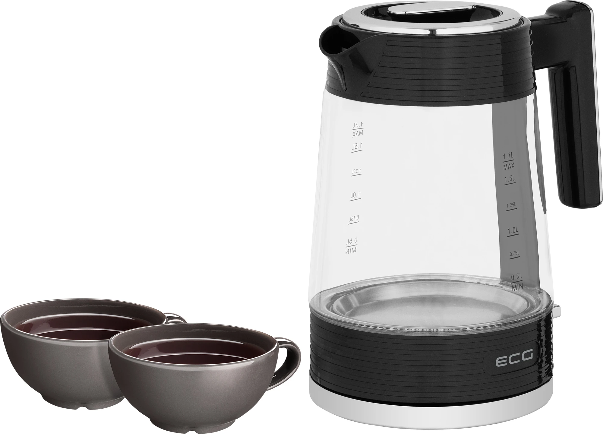 Rychlovarná konvice ECG RK 1750 z designové série Stripe vás na první pohled zaujme elegantním vzhledem, který kombinuje tvrzené sklo, robustní plast s vysokým leskem a stylové chromové doplňky. Vzhledem k objemu 1,7 litru je ideální i pro přípravu většího množství horké vody najednou – skvěle vám např. poslouží, když hostíte návštěvu a potřebujete rychle připravit čaj či kávu pro více lidí naráz. Praktický vodoznak vám přitom umožní jednoduše sledovat množství vody uvnitř, takže máte vše hezky pod kontrolou. Konvice pracuje s příkonem 1850–2200 W, a tak zvládá ohřát vodu na čaj či kávu extra rychle. O jejím aktuálním provozu jste spolehlivě informováni prostřednictvím stylového modrého podsvícení. V neposlední řadě je pak praktickým prvkem i úložný prostor pro napájecí kabel, který se nachází v základně.
