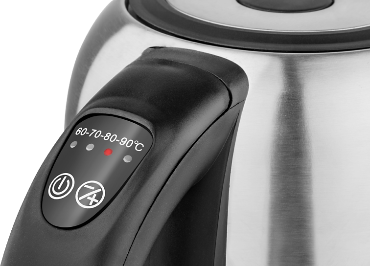 Pomocí tlačítkového ovládání, které je šikovně umístěno na ergonomické rukojeti, můžete volit z 5 teplotních stupňů od 60 do 100 °C (vždy s odstupem o 10 °C). Spuštěním konvice se rozsvítí světelná signalizace, která mění barvu podle vámi zvoleného stupně. Po dosažení požadované teploty vody se konvice automaticky vypne. Topné těleso je v případě tohoto modelu pečlivě skryté pod nerezovým dnem, čímž máte zajištěnu snadnou údržbu. Samozřejmostí je i bezpečnostní pojistka proti přehřátí.