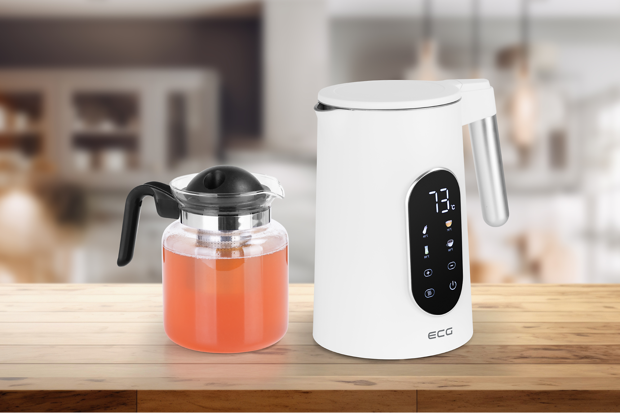 Rychlovarná konvice ECG RK 1799 Smart White, to je stylový doplněk do vaší kuchyně, který kombinuje moderní technologie s elegantním designem. Díky bílému povrchu se hodí do jakéhokoliv interiéru a svými funkcemi zaujme nejen milovníky čaje a kávy, ale i rodiče, kteří hledají spolehlivého pomocníka pro přípravu dětské výživy. Umožňuje totiž nastavení přesné teploty vody (v rozmezí 40–100 °C) a navíc nabízí přednastavené funkce pro nejčastěji připravované nápoje: bílý čaj, káva, zelený čaj a kojenecká výživa – to vše můžete nachystat na jediné stisknutí dotykového displeje. Ať už zkrátka toužíte po jemném aromatu bílého čaje, chcete si vychutnat správně připravenou kávu, nebo potřebujete ohřát vodu na ideální teplotu pro kojenecké mléko, tato konvice to zvládne s lehkostí.