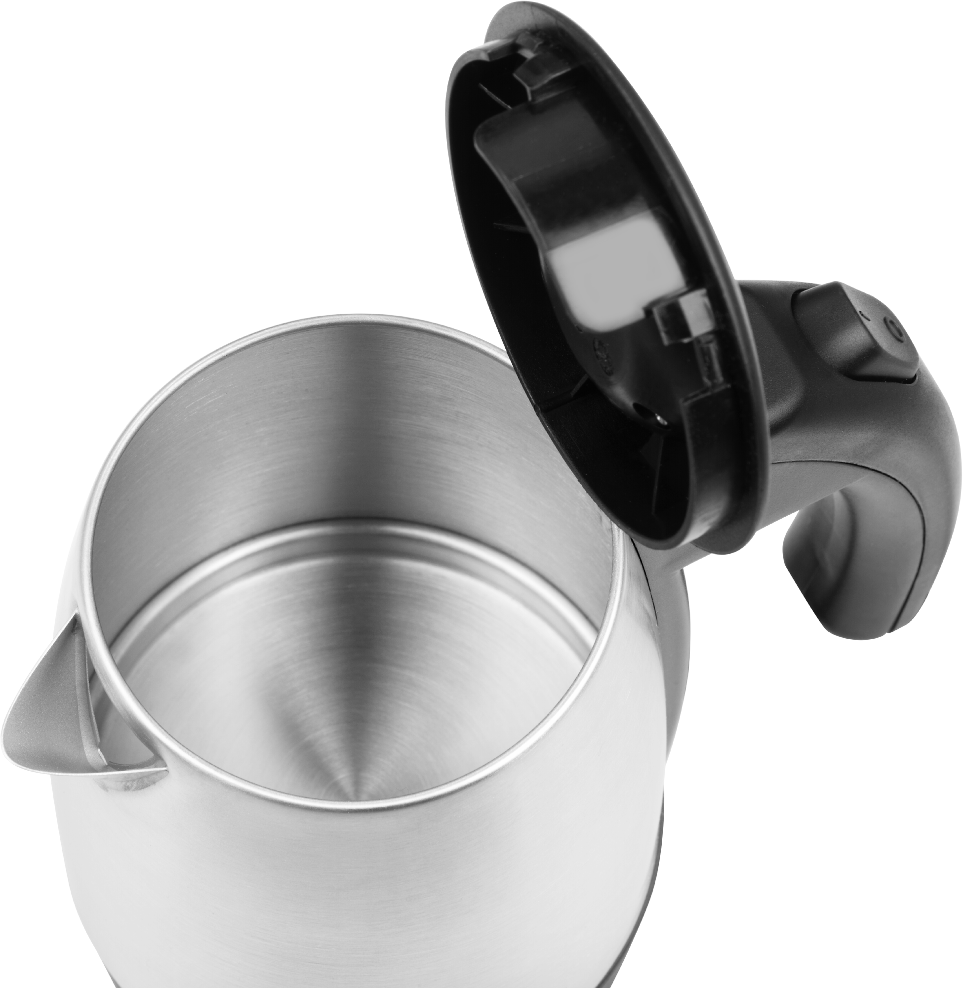 Ať už rádi pijete čaj, nebo si neumíte představit den bez kávy, s naší cestovní konvicí si můžete svůj oblíbený nápoj připravit během krátké chviličky. Konvice nabízí ovládání pomocí tlačítka umístěného na rukojeti, a tak je její obsluha nesmírně snadná. Také disponuje funkcí automatického vypnutí, takže ji stačí zapnout a pak už jen počkat, až se voda uvaří. A protože je její topné těleso šikovně skryto, oceníte na ní i jednoduchou údržbu.