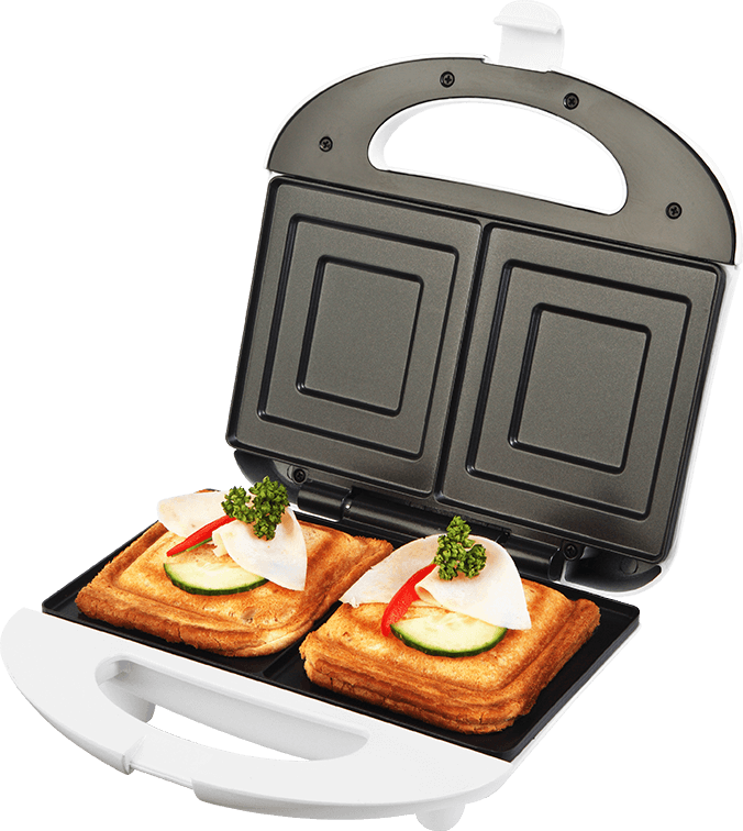 Sendvičovač ECG S 169 se může pochlubit pečicími plochami s nepřilnavým povrchem. Nedochází tedy k nežádoucímu připékání zbytků jídel a následné čištění tak bude otázkou okamžiku. Najednou připravíte až 2 čtvercové sendviče. Přístroj spustíte pouhým připojením do zásuvky. V horní části sendvičovače najdete světelné indikátory, které vás informují o připojení k síťové zásuvce a připravenosti k použití. Vždy tak přesně víte, kdy je možné začít se zapékáním. Příkon dosahuje hodnoty 700 W.