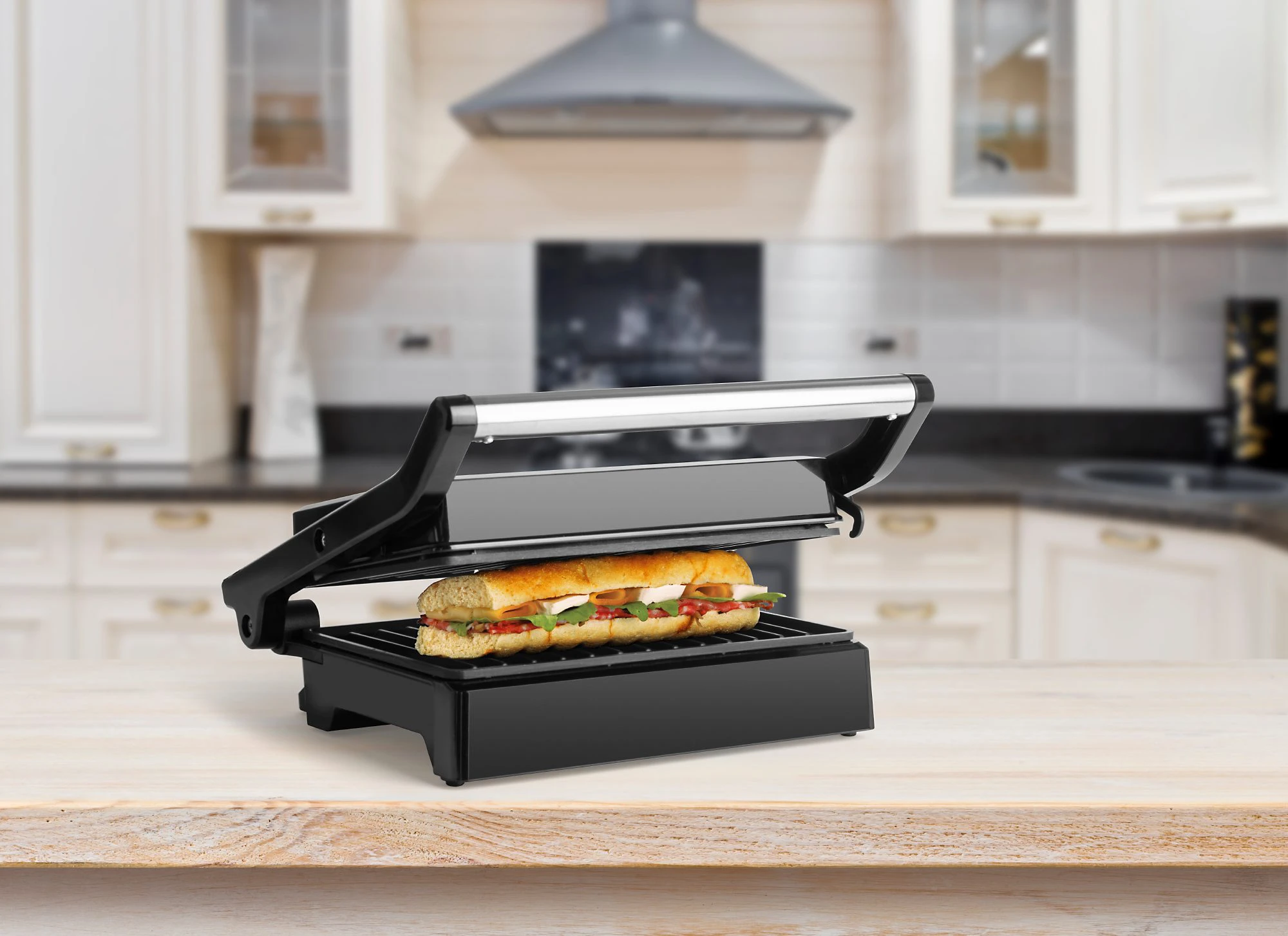 Navíc jistě oceníte praktický zámek, díky kterému můžete panini maker snadno a bezpečně uložit do kuchyňské linky i ve svislé poloze