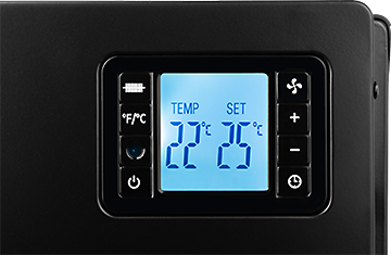 Na velkém ovládacím panelu s LCD displejem si nastavíte například stupeň výkonu nebo režim TURBO. Pohodlnější obsluhu umožňuje dálkový ovladač, kterým si nastavíte, co potřebujete například z pohovky.