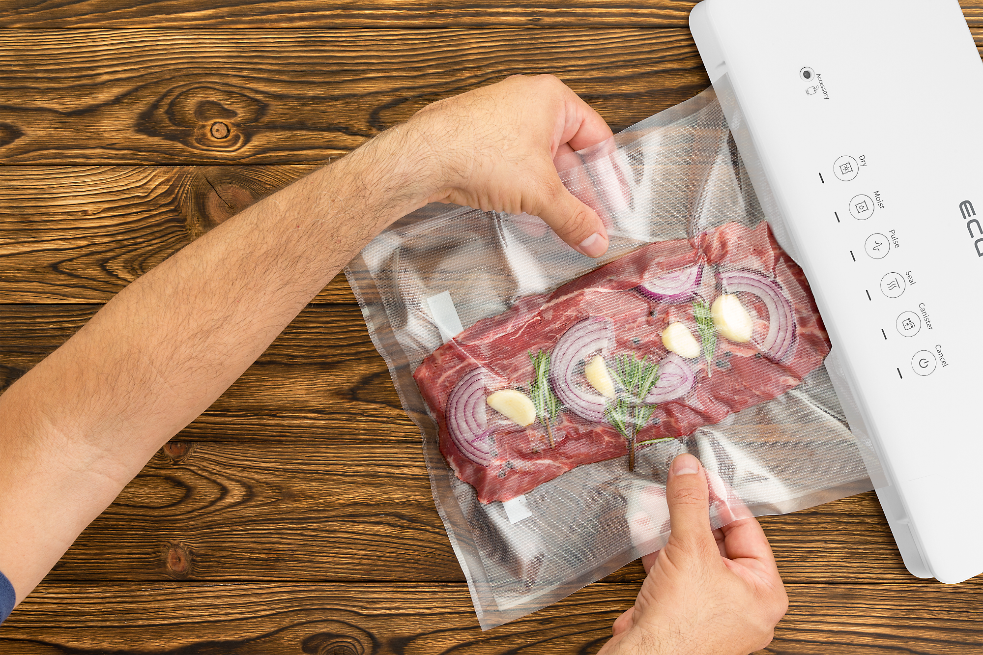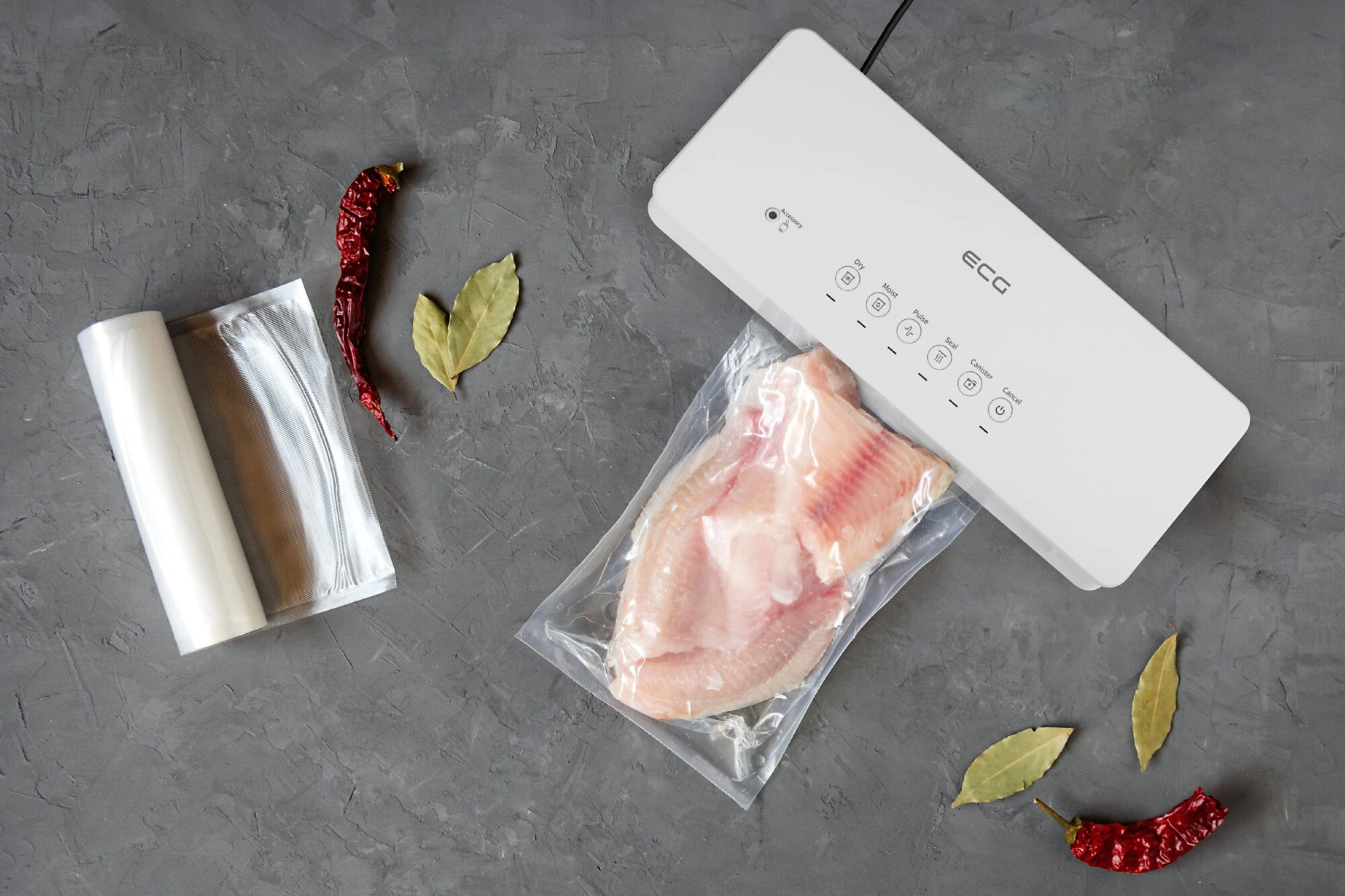 Až pětkrát delší doba skladování potravin. Efektivní marinování masa a dalších pochoutek. Ale taky třeba vaření šetrnou metodou sous-vide. K tomu všemu máte s vakuovací svářečkou fólií ECG VACUFRESH dveře otevřené. Tento praktický kuchyňský pomocník totiž dokáže odstranit vzduch z balicího prostoru a poté utěsnit fólii, čímž se vytvoří vakuum – ideální prostředí pro uchovávání jídla. Svářečka pracuje s příkonem 100 W a disponuje i integrovaným nožem na řezání fólie či praktickým držákem pro fóliovou roli. Její používání je tak velmi snadné a pohodlné.