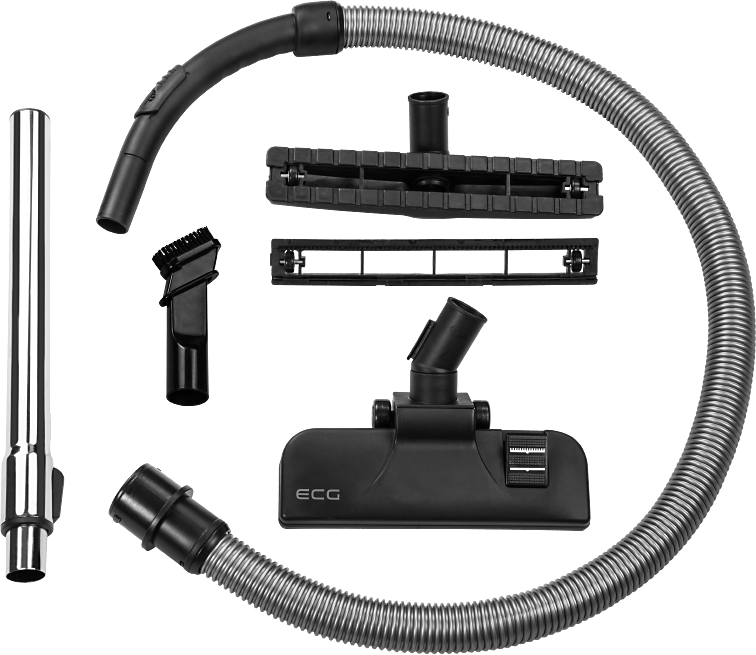 Víceúčelový vysavač ECG VM 3140 Hobby je vybaven řadou praktického příslušenství, které mu umožňuje dokonale optimální přizpůsobení každému druhu úklidu. Vedle klasického kartáče na podlahu/koberec je k dispozici také štěrbinová hubice s prachovým kartáčkem, kompaktní Turbo hubice, mokrý kartáč a suchý kartáč.