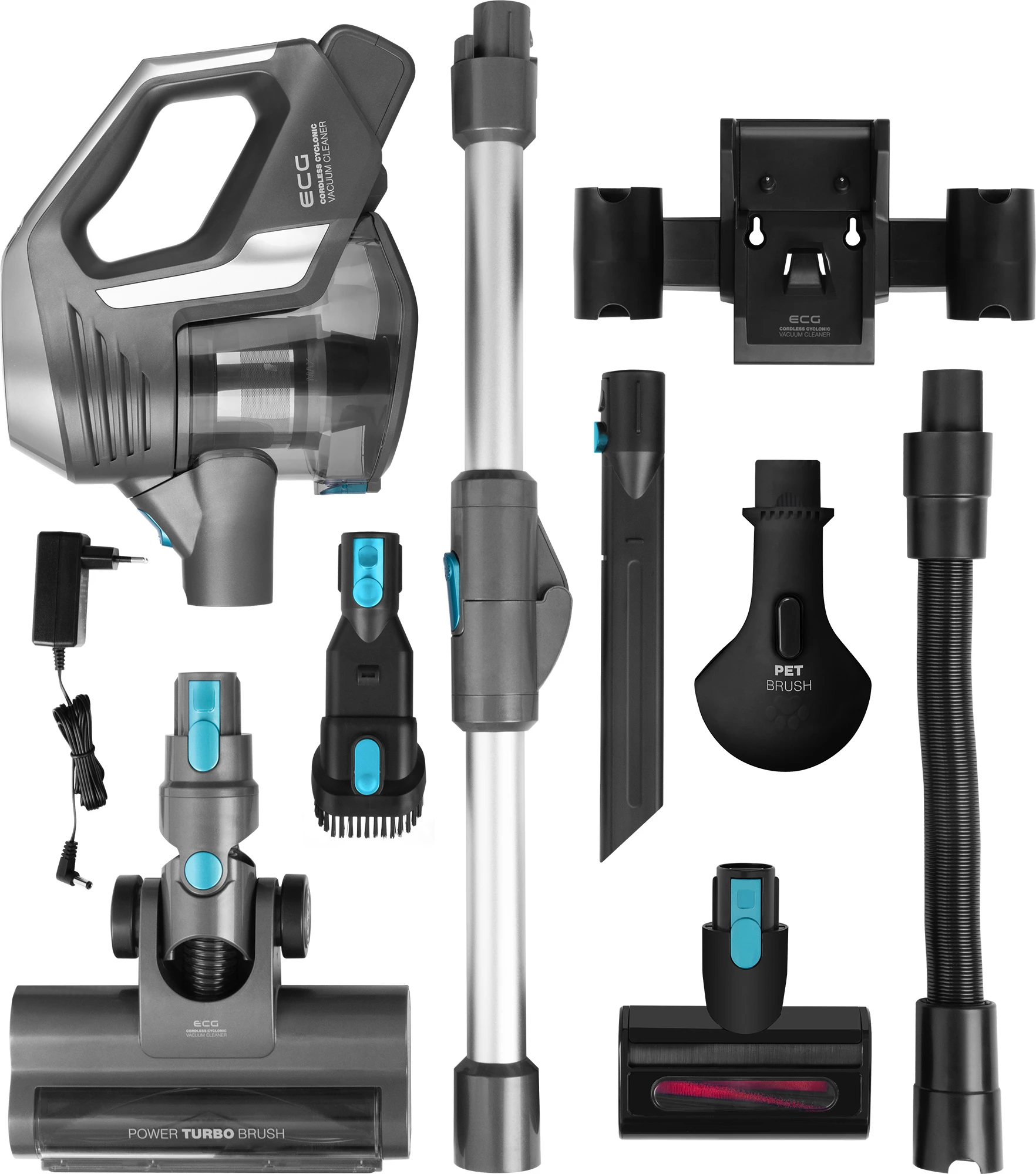 Vysavač ECG VT 7670 2in1 Luis vám dodáme s bohatým příslušenstvím, které usnadňuje vysávání různých povrchů. Součástí balení jsou speciální nástavce, které vám pomohou s úklidem čalouněného nábytku, špatně dostupných míst i srsti domácích mazlíčků. Příslušenství přitom můžete pohodlně zavěsit společně s vysavačem a nabíjecí základnou na zeď, čímž doma ušetříte místo a hlavně budete mít všechno hezky při ruce. Vysavač je vybaven i praktickým indikátorem stavu baterie. Jeho plné nabití trvá přibližně 4,5 hodiny.