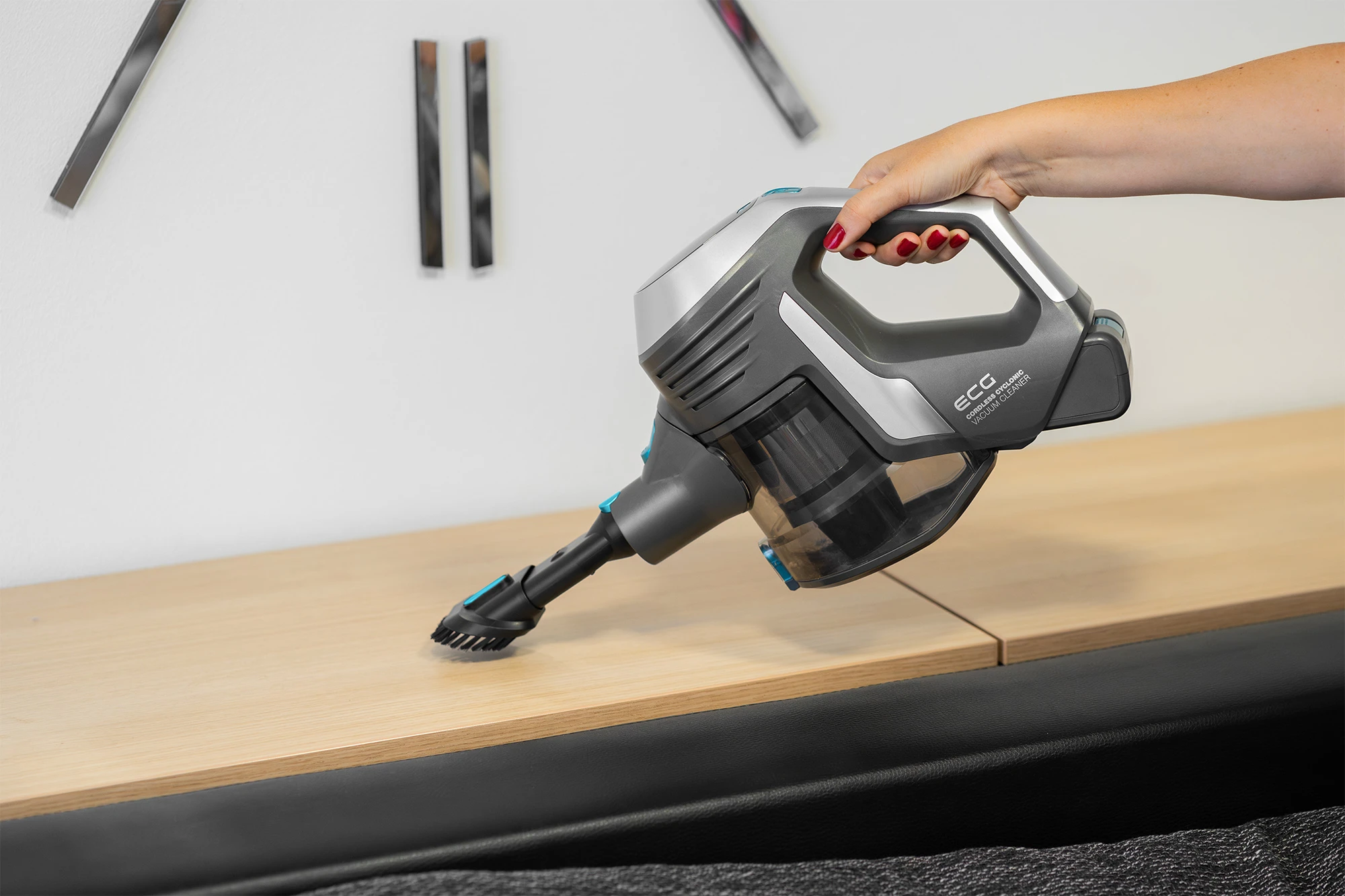 Tyčový aku vysavač ECG VT 7670 2in1 Luis je navržen tak, aby vám co nejvíce usnadnil každodenní úklid. Jeho hlavní předností je provedení 2 v 1, které kombinuje klasický tyčový vysavač s odnímatelným ručním luxem. To znamená, že kromě podlah zvládnete s tímto spotřebičem pohodlně vysát i sedačku, jídelní stůl, nebo dokonce interiér auta. Bezdrátové provedení s výdrží až 40 minut na jedno nabití vám přitom umožní uklízet bez neustálého přepojování kabelů a hledání zásuvek.