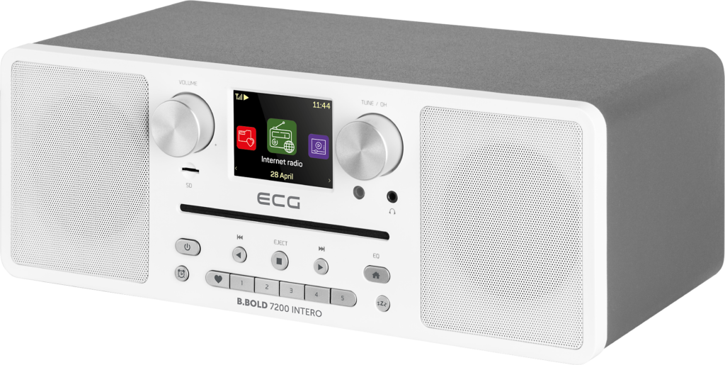 Das vielseitige Radio ECG B.BOLD 7200 INTERO kann von jedermann bedient werden. Das Gerät ist mit einer Reihe übersichtlicher Tasten und Drehknöpfe ausgestattet, verfügt über ein 2,8" farbiges TFT-Display und eine praktische Fernbedienung erhalten Sie ebenfalls.