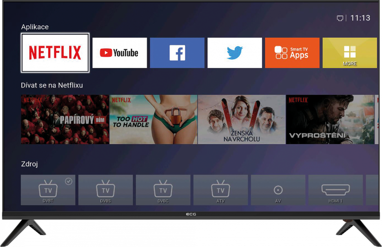 Auch dieser Fernseher unterstützt die moderne HbbTV-Technologie, weshalb Sie auch auf die Online-Archive einzelner TV-Sender zugreifen können – drücken Sie einfach den roten Knopf auf der Fernbedienung. Darüber hinaus befinden sich weitere interessante Tasten auf der Fernbedienung – zum Beispiel solche, mit denen Sie mit einem einzigen Tastendruck auf die beliebten YouTube- und Netflix-Dienste zugreifen können. Beachten Sie jedoch, dass der Fernseher mit dem Internet verbunden werden muss, damit Sie diese Funktionen nutzen können.
