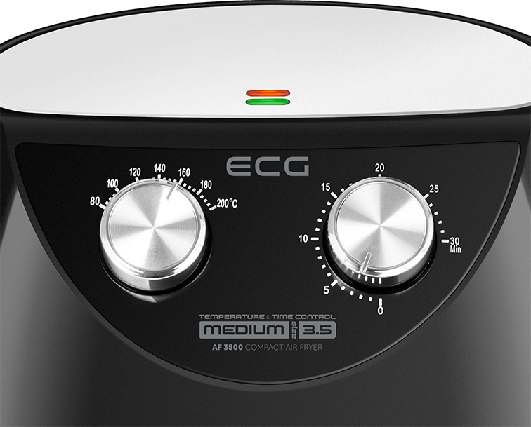 Mit den intuitiven Drehknöpfen können Sie ganz einfach die Temperatur (80 bis 200 °C) oder den Timer (bis zu 30 Minuten) einstellen. Mit ECG AF 3500 können Sie wahre Delikatessen vom Rindersteak über Zwiebelringe bis hin zu süßen Donuts oder Brötchen zubereiten. Sie können alles probieren, ausgezeichnet sind auch gegrilltes Gemüse oder Zucchini-Pommes.