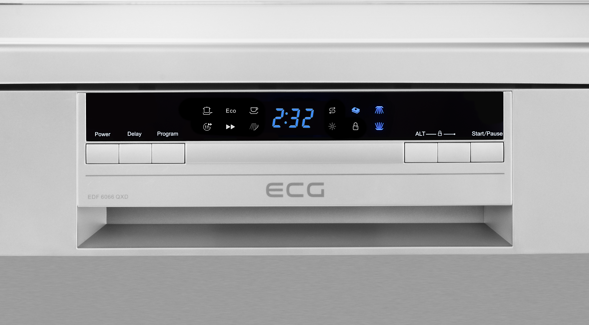 Der freistehende Geschirrspüler ECG EDF 6066 QXD ist mit seinen 60 cm ein standardmäßig breiter Geschirrspüler. Dieses Modell ist bereit, bis zu 14 Geschirr-Sets zu waschen, was bei Familienfeiern und anderen großen Veranstaltungen sehr nützlich ist.