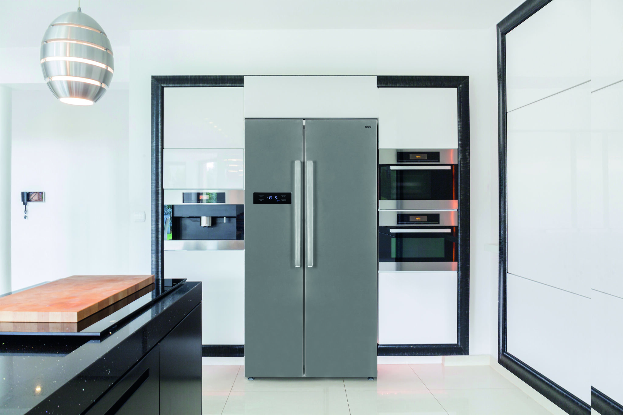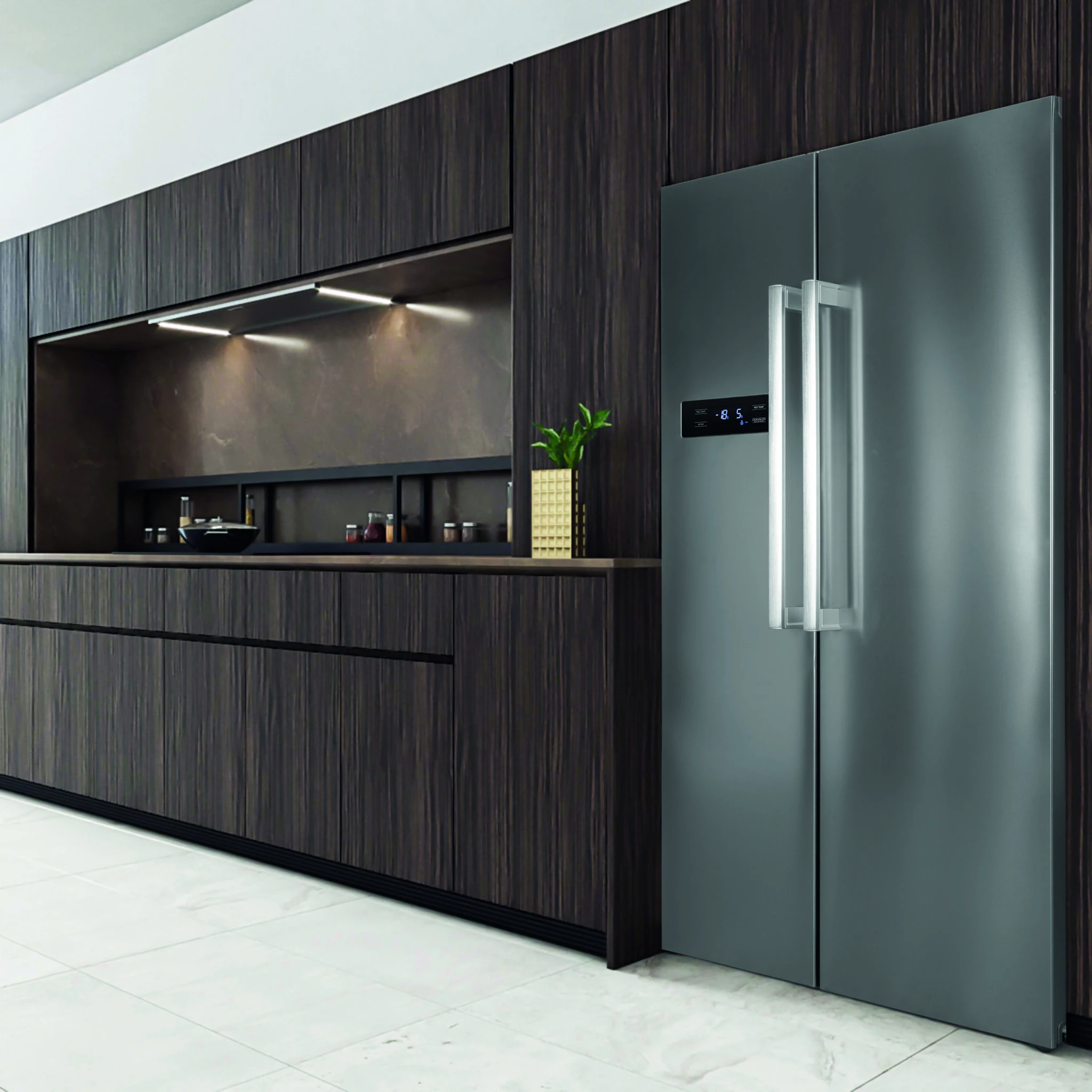 Der amerikanische Kühlschrank ECG ERS 21782 NIXE im eleganten Edelstahldesign kann die perfekte Ergänzung für jede moderne Küche sein. Es sieht nicht nur toll aus, sondern kann vor allem Ihren Alltag erheblich erleichtern. Sein geräumiger Innenraum mit einem Gesamtvolumen von 548 Litern ermöglicht Ihnen die Aufbewahrung großer Mengen an Lebensmitteln, ohne Kompromisse eingehen zu müssen. Die LED-Innenbeleuchtung in Verbindung mit der intelligenten Stauraumorganisation verschafft Ihnen den perfekten Überblick. Und die Wartung? Kein Problem. Dank des No Frost-Systems können Sie das langwierige Abtauen vergessen und sich auf das konzentrieren, was Sie lieben.