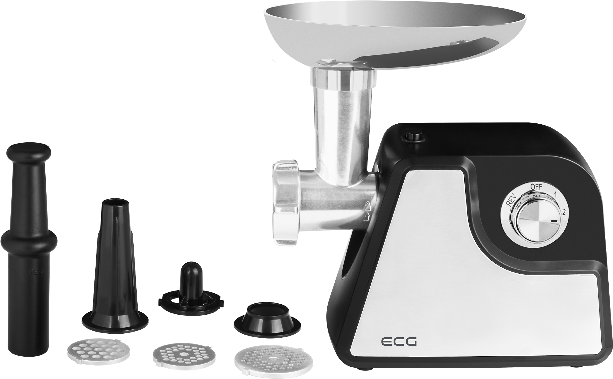 Die hervorragenden Ergebnisse des Fleischwolfs ECG MG 1310 Simply sind auch auf die hochwertigen selbstschärfenden Messer, Hackmesser und Scheiben aus langlebigem Stahl zurückzuführen. Der Fleischwolf ist mit 3 austauschbaren Schleifscheiben ausgestattet – fein (3 mm), mittel (5 mm) und grob (8 mm). Der Fleischwolf eignet sich ideal zum Zerkleinern verschiedener Fleischsorten. Oder Sie können die Sorten je nach Vorliebe kombinieren. Kein gekaufter „Tatarbeefsteak“ wird so 100 % sein wie Ihr selbstgemachtes Rindertartar.