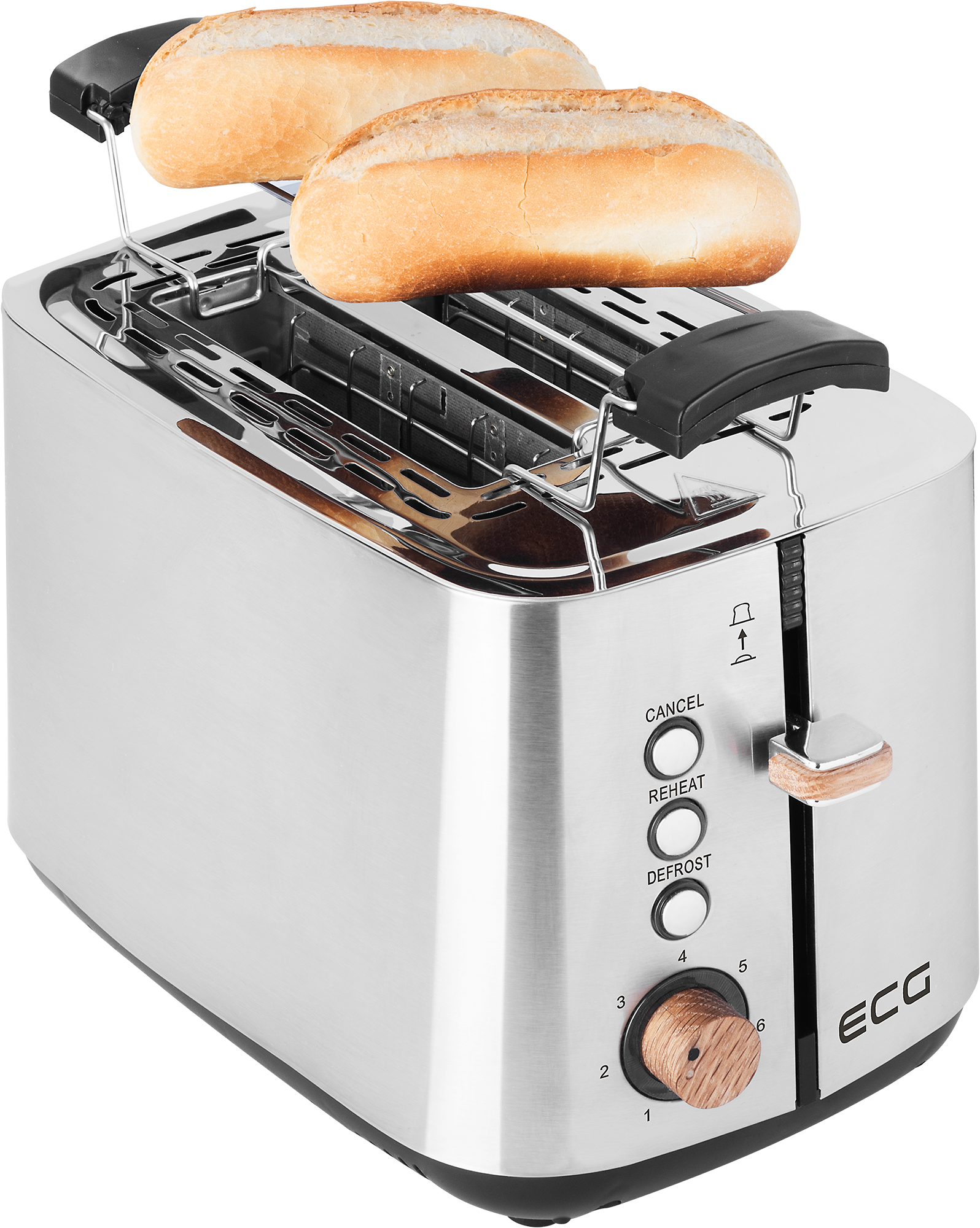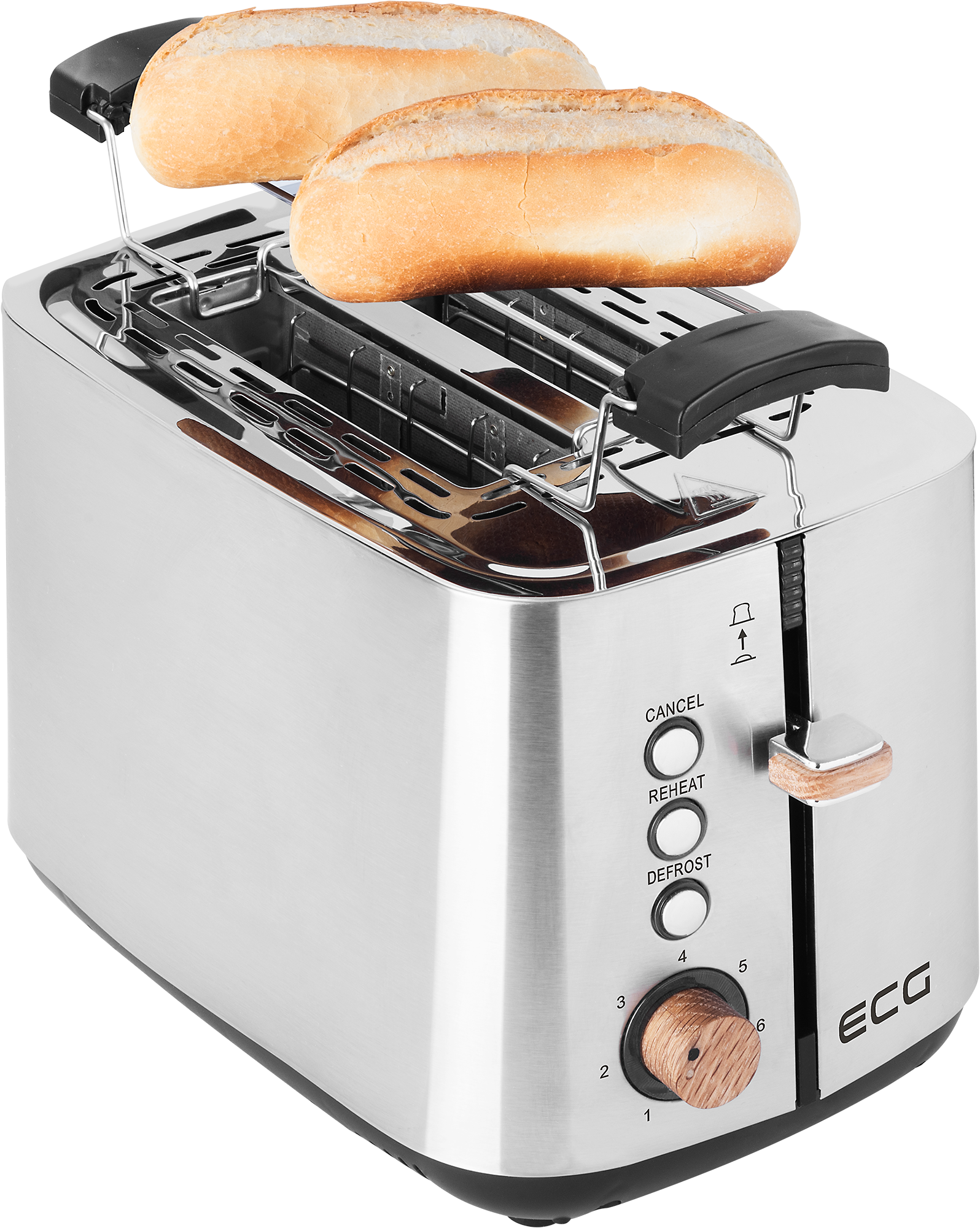 Glauben Sie, dass die Grundlage für einen erfolgreichen Tag ein ausgiebiges Frühstück ist? Dann ist der ECG ST 2767 Timber der richtige Küchenhelfer für Sie. Mit ihm können Sie jeden Morgen unwiderstehlich knusprigen Toast für sich und die ganze Familie zubereiten. Ob Sie sie nun salzig oder süß bevorzugen, mit diesem Toaster machen Sie nichts falsch. Sie erhalten nicht nur einen Küchenhelfer für die Zubereitung leckerer Köstlichkeiten, sondern auch eine stilvolle Küchendekoration – wir haben dieses Kleingerät mit einem Edelstahl-Finish versehen und sein attraktives Design mit stilvollen Holzelementen hervorgehoben.