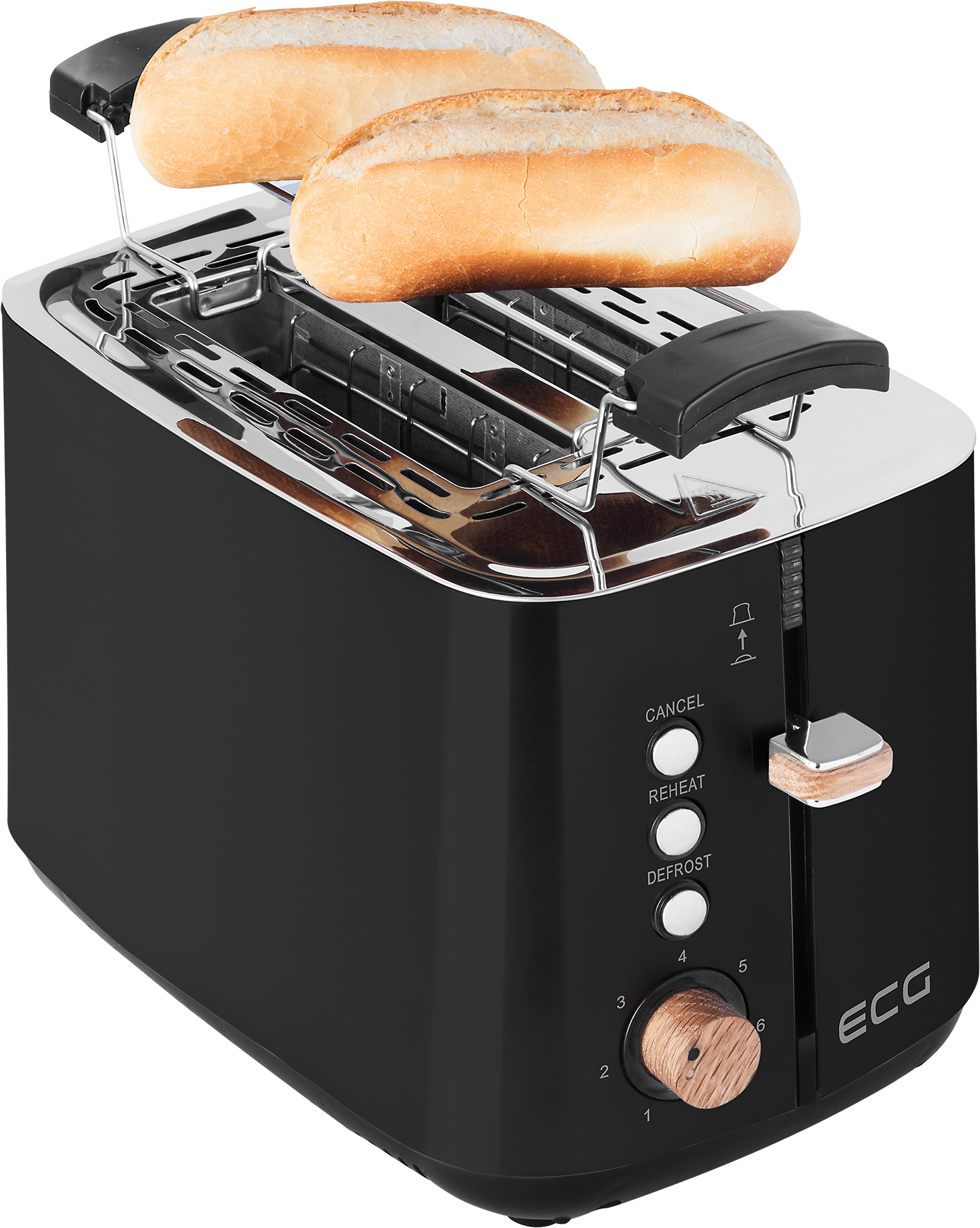 Glauben Sie, dass die Grundlage für einen erfolgreichen Tag ein ausgiebiges Frühstück ist? Falls ja, dann ist der ECG ST 2768 Timber der richtige Küchenhelfer für Sie. Mit ihm können Sie jeden Morgen unwiderstehlich knusprigen Toast für sich und die ganze Familie zubereiten. Ob Sie sie nun salzig oder süß bevorzugen, mit diesem Toaster machen Sie nichts falsch. Sie erhalten nicht nur einen Küchenhelfer für die Zubereitung leckerer Köstlichkeiten, sondern auch eine stilvolle Küchendekoration – wir haben diesem Kleingerät ein schwarzes Finish aus hochwertigem Edelstahl verpasst und sein attraktives Design mit stilvollen Holzelementen hervorgehoben.