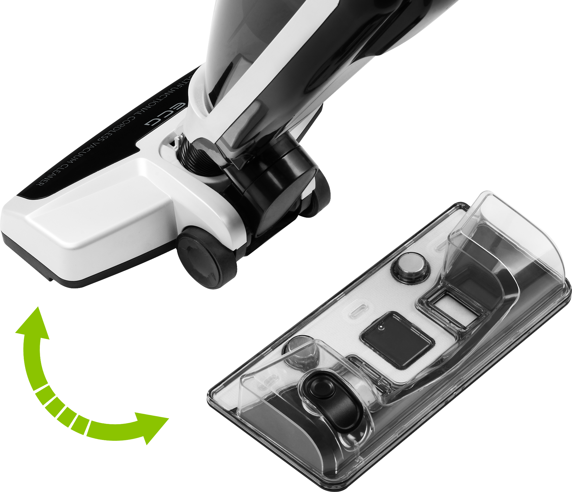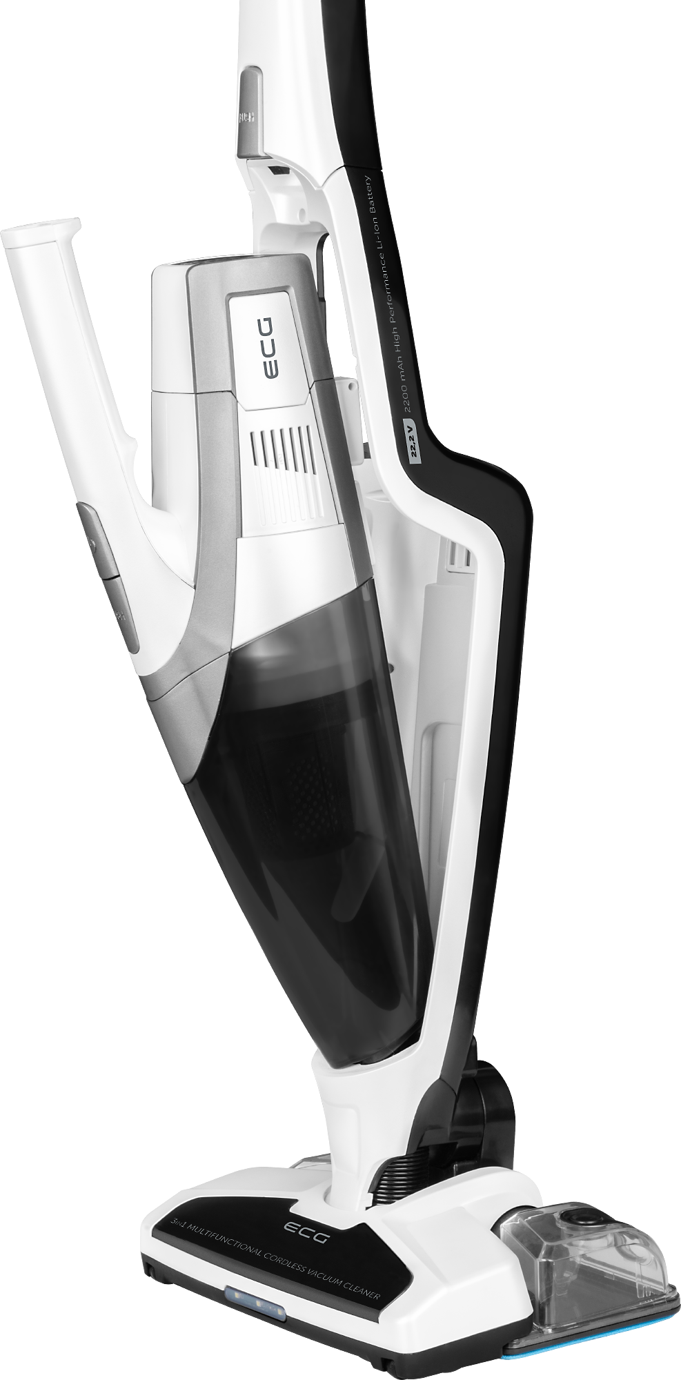 Der Akku-Stabstaubsauger ECG VT 4320 3in1 Multi Clean ist nicht nur ein effektives Gerät zum Saugen aller Arten von Böden, sondern auch ein praktischer kleiner abnehmbarer Staubsauger für die Reinigung von kleinem Schmutz und ein Wischgerät mit integriertem Wassertank und Wischtuch zum bequemen Wischen.