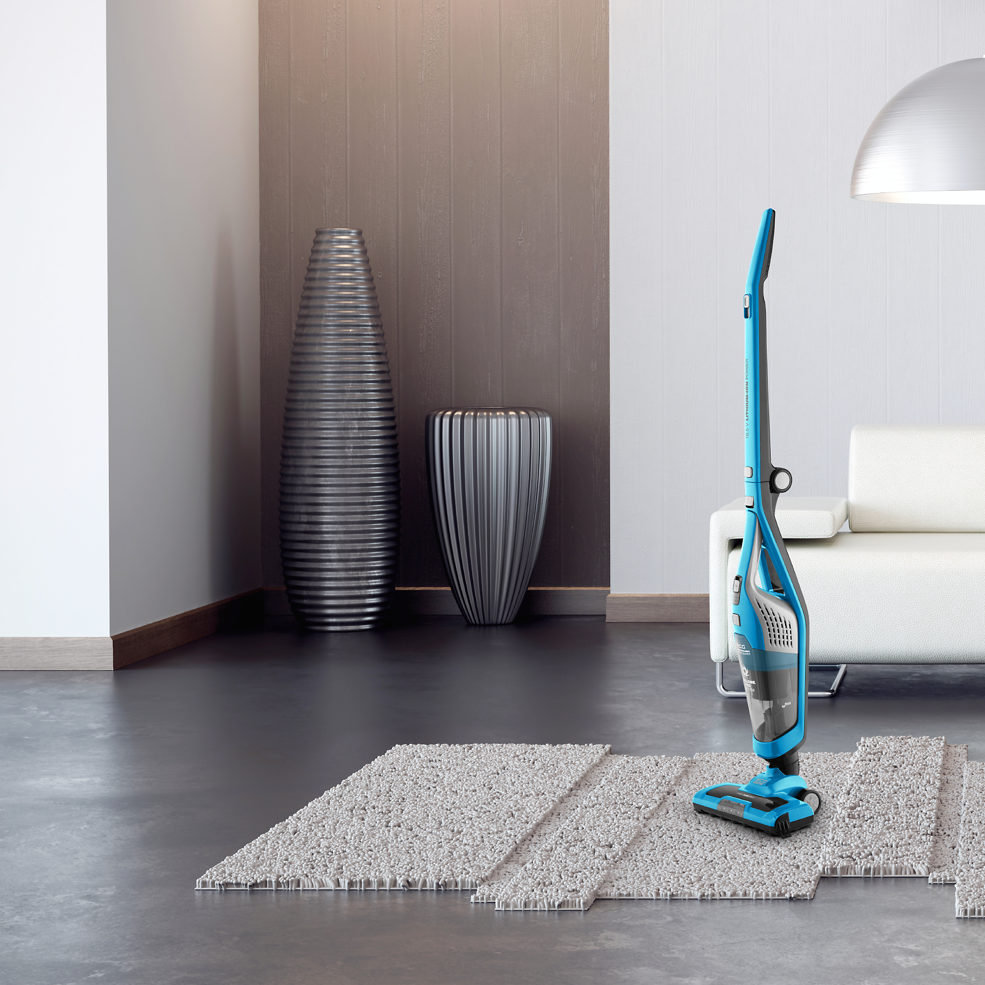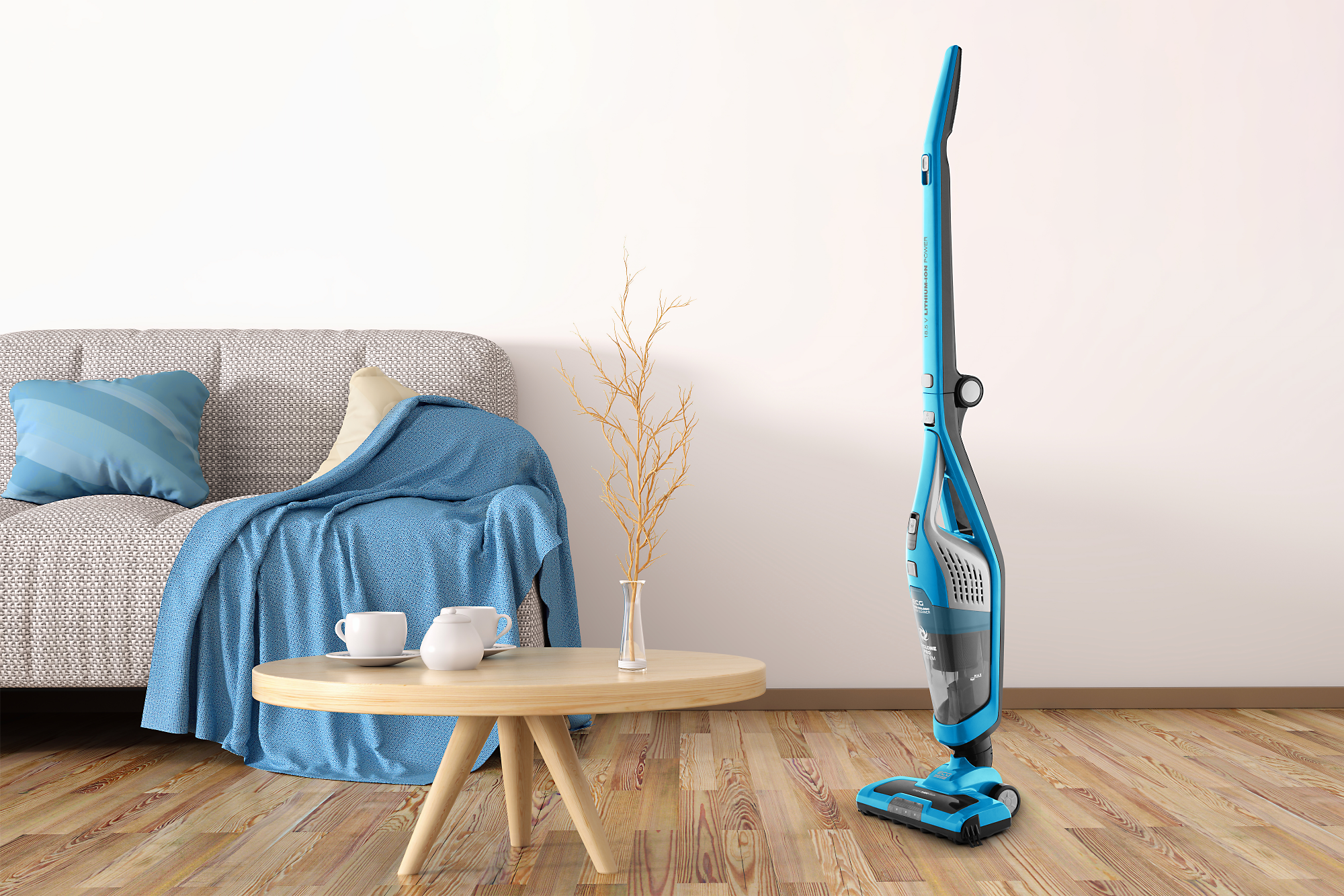 Damit Sie während der Reinigung kein Kabel hinter sich herziehen (und es in verschiedene Steckdosen anschließen) müssen, kann unser Akku-Staubsauger mit einem leistungsstarken Li-Ion-Akku betrieben werden. Nach dem vollständigen Aufladen können Sie ihn bis zu 45 Minuten benutzen.