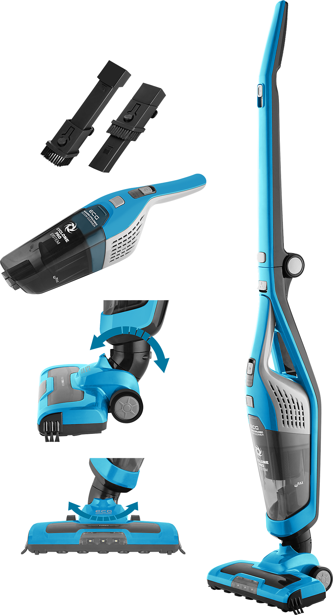 Der Akku-Staubsauger von ECG erfreut Sie auch mit seinem raffinierten Design. Alle seine Komponenten tragen dazu bei, dass die Reinigung besonders wirksam ist. Das Herz des Geräts ist der leistungsstarke Motor, der 2 Geschwindigkeitsstufen (bis zu 90 W) bietet. Erwähnenswert ist auch die motorisierte Rotationsbürste, die die Reinigung noch effizienter macht. Sie werden garantiert auch die kleinen Features zu schätzen wissen, die das Staubsaugen noch einfacher machen – es gibt eine LED-Beleuchtung der zu saugenden Fläche, Räder mit hochwertiger Gummibeschichtung und oder ein praktischer Klappgriff. Der sichere Betrieb des Staubsaugers wird durch einen Überhitzungsschutz gewährleistet.