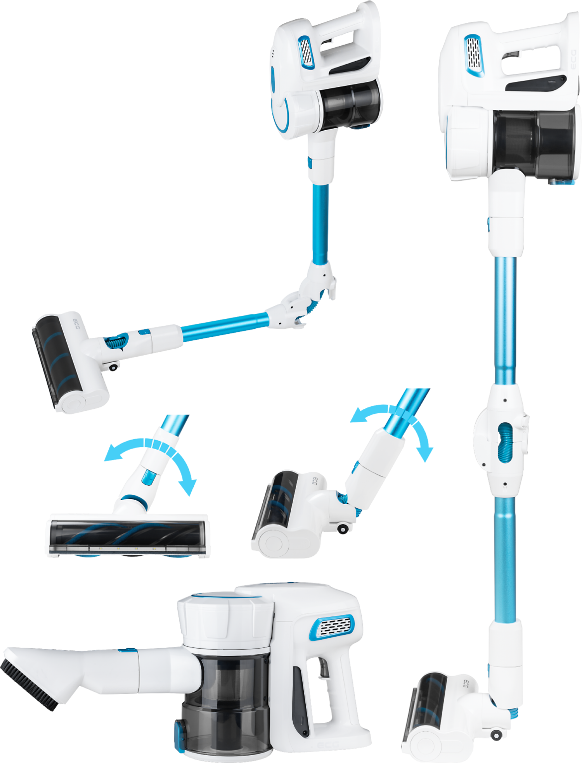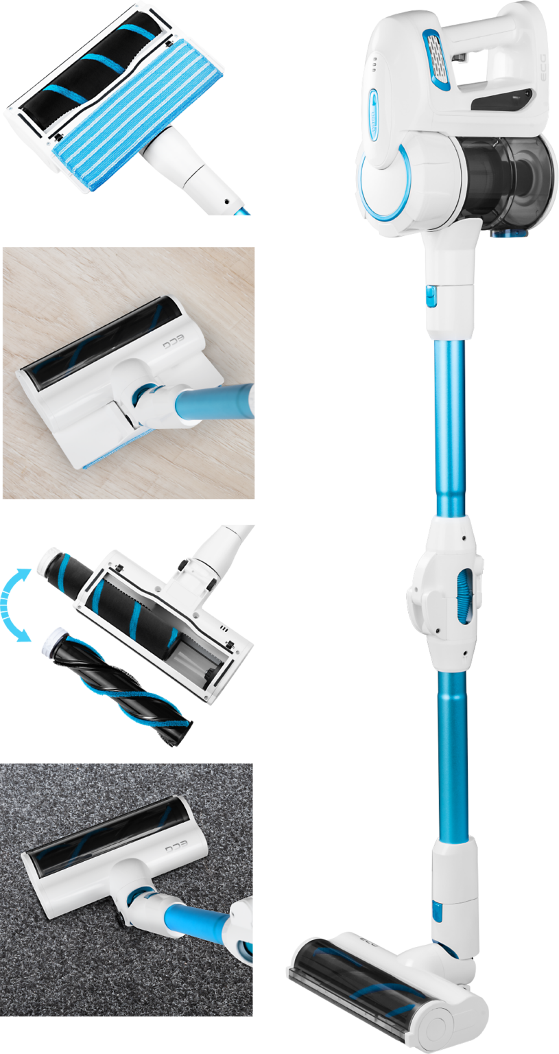 Der beutellose Stabstaubsauger ECG VT 5220 2in1 Flex Clean hilft Ihnen, damit Sie sich bei der regelmäßigen Reinigung nicht unnötig anstrengen müssen, aber gleichzeitig alles wirklich effizient reinigen. Es handelt sich um ein modernes Gerät mit einem effizienten Zyklonmotor und einer Leistung von 150 W. Es reinigt perfekt Hartböden und Teppiche, und Sie können auch die Couch, Sessel oder Autositze reinigen. Der Staubsauger lässt sich leicht in einen kleineren Handstaubsauger verwandeln, der fast überall eingesetzt werden kann. Der Staubsauger ist außerdem mit einem Wischpad ausgestattet, das das Abwischen ermöglicht. Der abnehmbare Schmutzbehälter hat ein Fassungsvermögen von 500 ml und bietet eine praktische Füllstandsanzeige. Bei der Reinigung werden Sie sicherlich die LED-Beleuchtung des gesaugten Bereichs und den effektiven HEPA-Filter zu schätzen wissen, dank dem der Staubsauger keine unnötige sekundäre Verschmutzung verursacht.